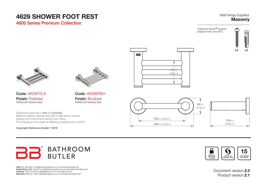 Description: Enhance your bathroom with the Bathroom Butler 4629 Shower Foot Rest -POLS, a premium accessory designed to add both function and style. Crafted from high-grade this Bathroom Accessory ensures durability and long-lasting performance.