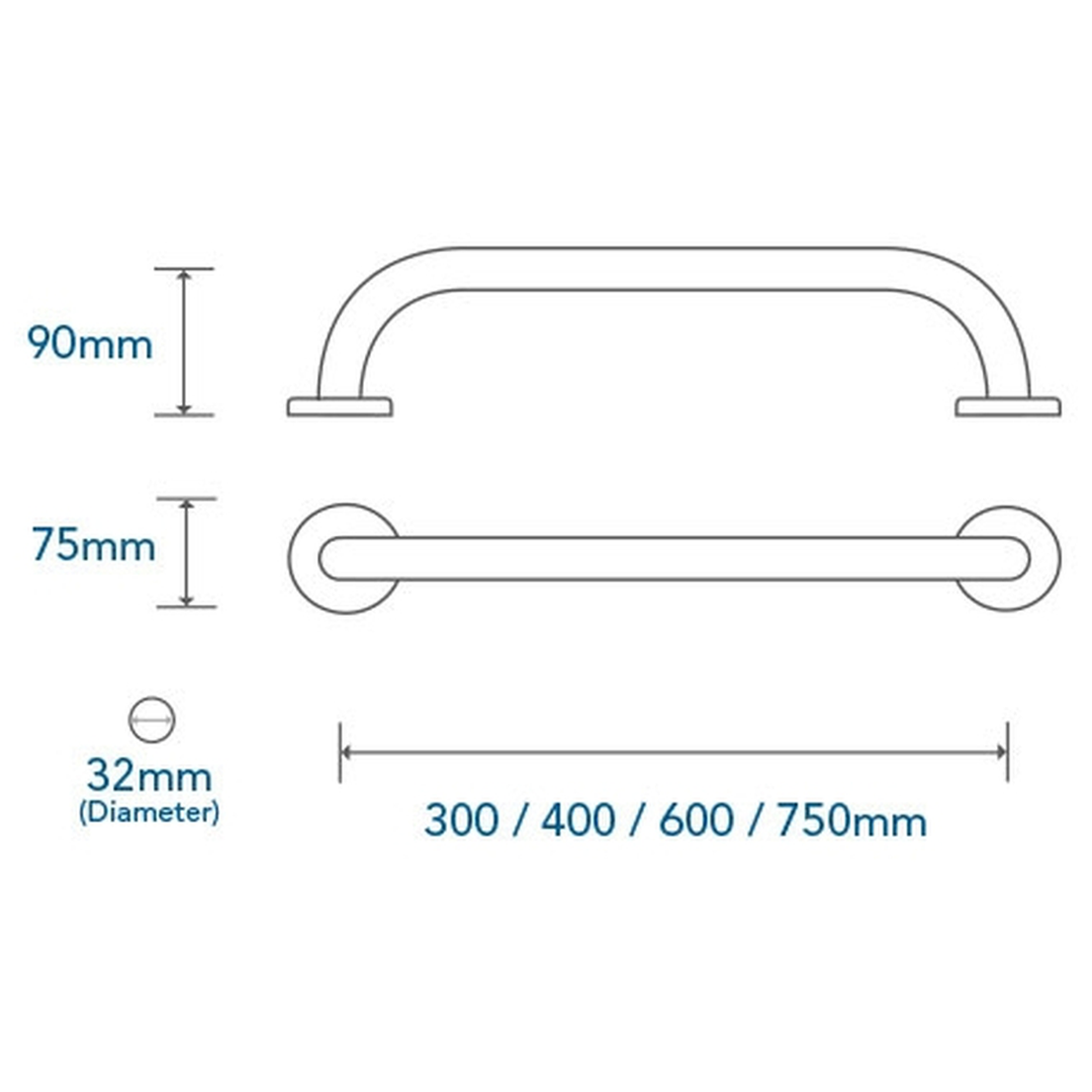 Description: The Stunning Bathrooms GRAB RAIL - 32mm diam. x 400mm offers a sleek and functional design, crafted from High-Quality Material, ensuring durability and elegance for your bathroom.