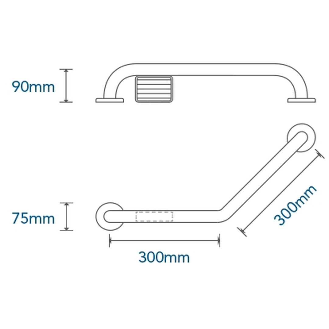 Description: The Stunning Bathrooms GRAB RAIL - CRANKED WITH SOAP BASKET offers a sleek and functional design, crafted from High-Quality Material, ensuring durability and elegance for your bathroom.