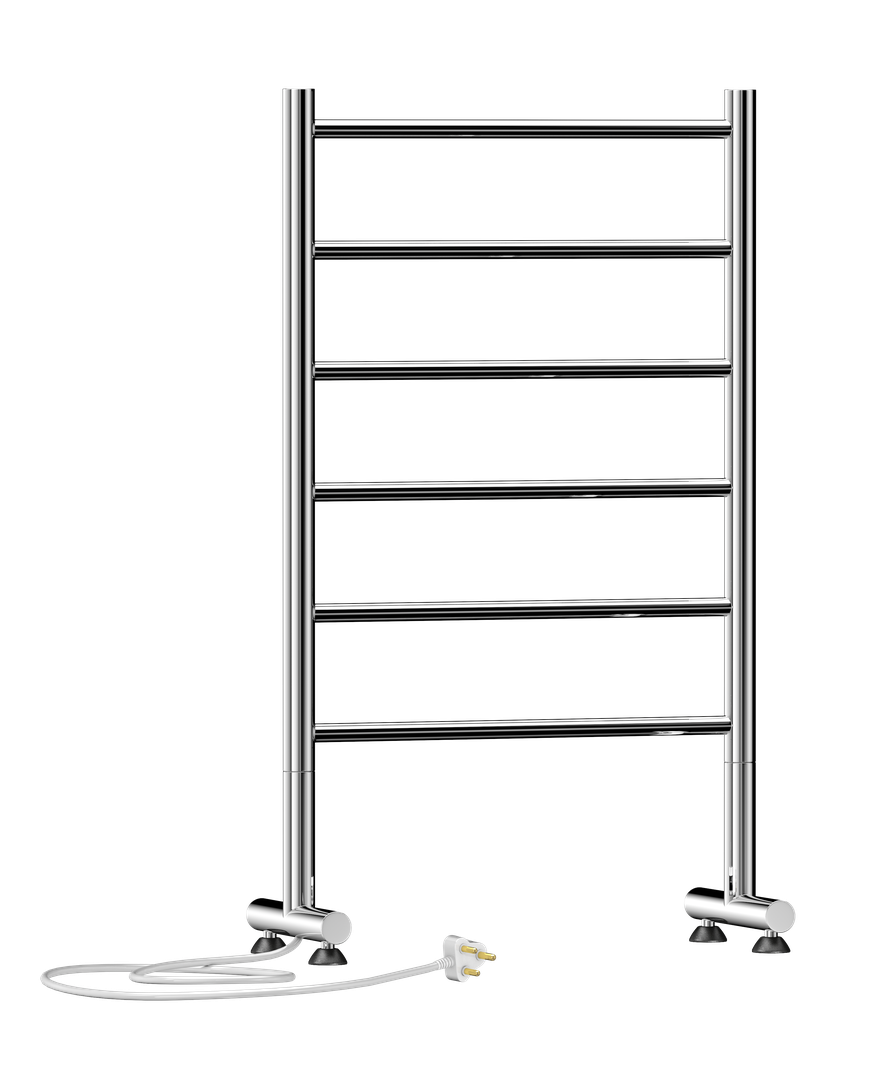 Description: The Jeeves Tangent Six 520 Electric Freestanding offers a sleek and functional design, adding warmth and luxury to your bathroom. This heated towel rail, finished in Black Finish, ensures both comfort and style.