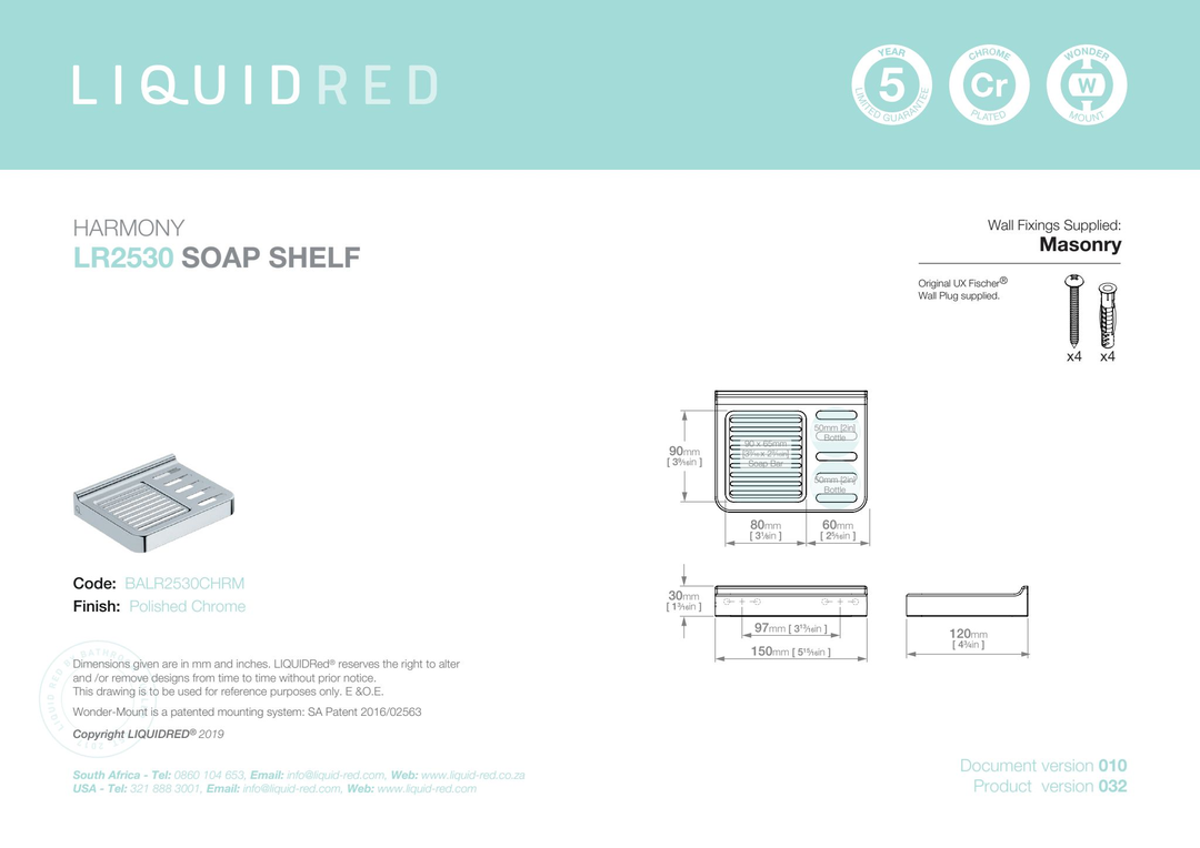 Description: The Liquid Red 2530 HARMONY Soap Shelf -CHRM combines sleek design with functionality, making it an essential addition to any contemporary bathroom. Built with premium materials, this Bathroom Accessory offers both style and durability.