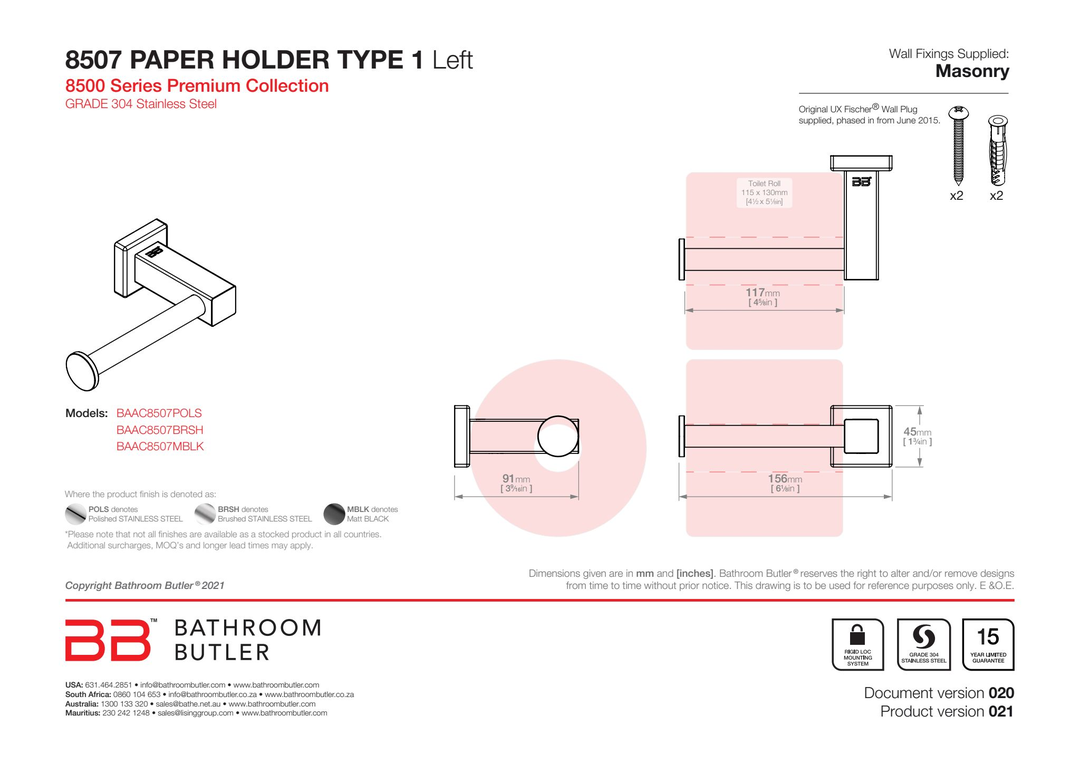 Description: Enhance your bathroom with the Bathroom Butler 8507 Paper Holder I LEFT -MBLK, a premium accessory designed to add both function and style. Crafted from high-grade this Bathroom Accessory ensures durability and long-lasting performance.