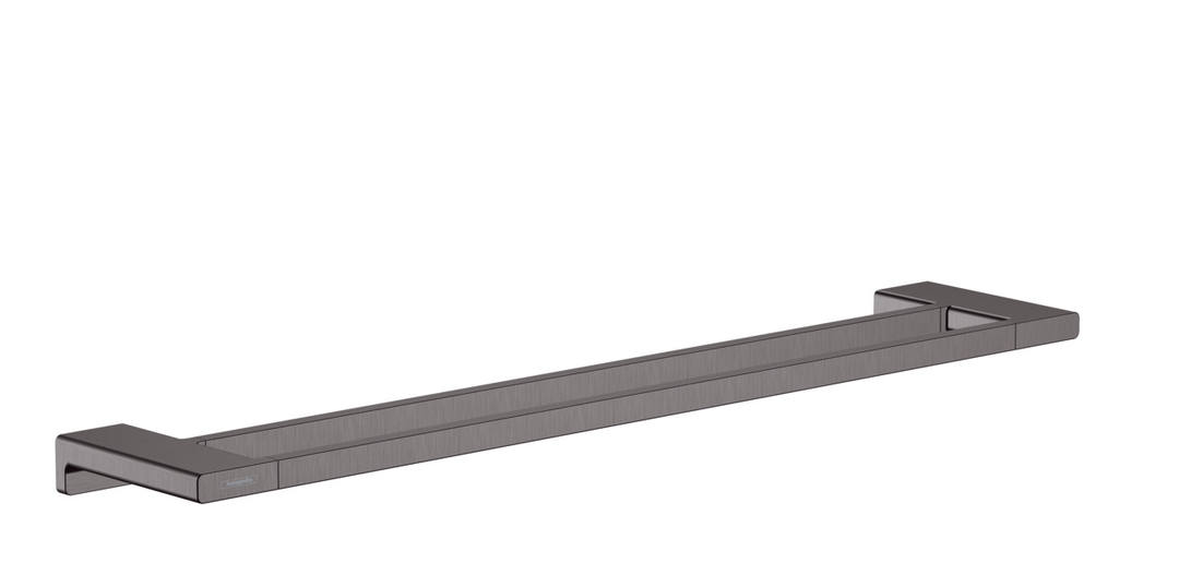 Description: Bath towel holder in from hansgrohe The AddStoris double bath towel holder from hansgrohe adds visual and functional flair to the bathroom. Two towels are always within reach on the approx. 650 mm wide holder, where they can dry quickly, too. The modern and minimalist design wows users with its distinct, bold style. It goes really well with geometric bathroom taps, such as the hansgrohe Metropol range. And the hansgrohe quality keeps the promises made by the premium design: TheAddStoris bath towel holder is made of metal, so it is made to last. This product is both a sustainable use of resources and it reduces the amount of plastic in bathrooms. The surface finish in is easy to clean and is one of the colour schemes in the range of hansgrohe special surface finishes for taps (FinishPlus). So everything can match perfectly. Easy installation The bath towel holder is safely affixed to the wall using a total of four screws. The hole spacing is 26 mm on both sides. Other features • Sturdy mounting set with metal retaining element • Hidden attachment for a harmonious look • Comes with mounting material • Brand quality from hansgrohe: Spare parts can be purchased up to 15 years after the range has been discontinued - Hansgrohe - Addstoris - Bathroom Accessories - Towel Holders - Optic