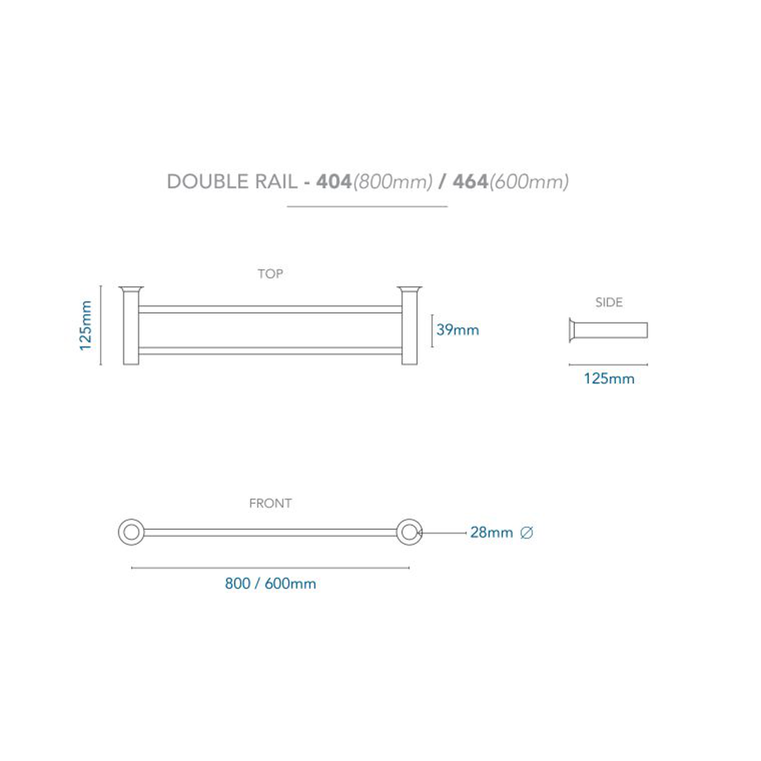 Description: The Stunning Bathrooms ALLURE POLISH DOUBLE RAIL - 800mm offers a sleek and functional design, crafted from Brushed ensuring durability and elegance for your bathroom.