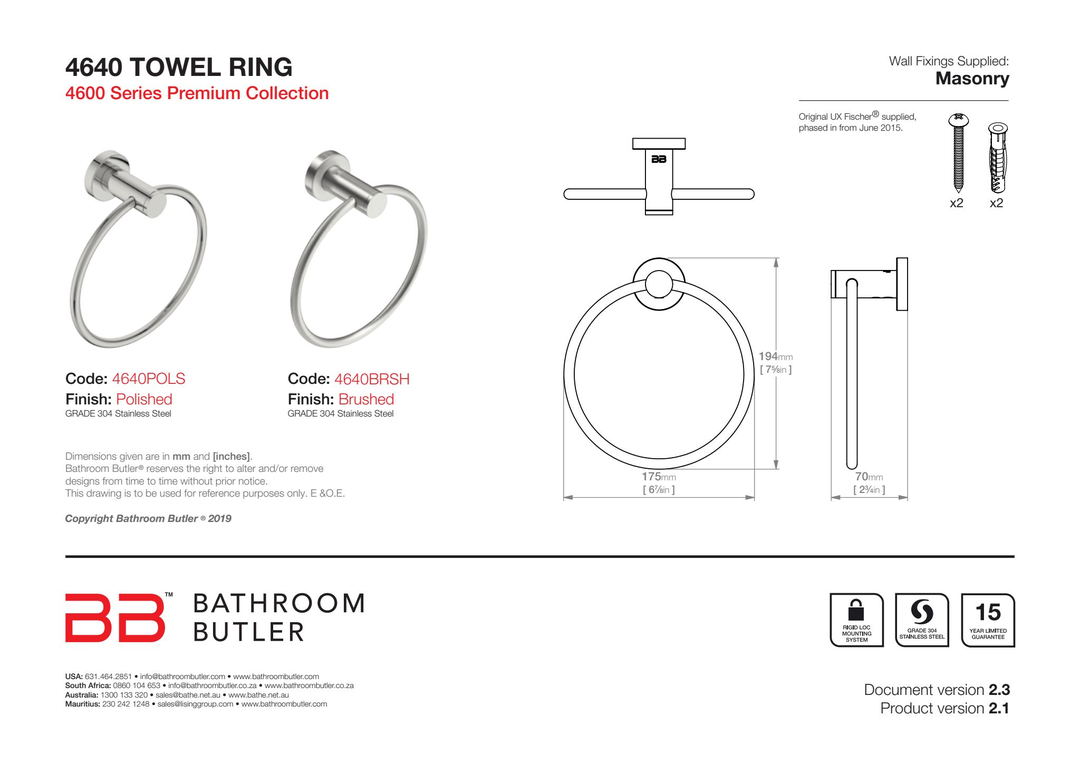 Description: Enhance your bathroom with the Bathroom Butler 4640 Towel Ring -BCGD, a premium accessory designed to add both function and style. Crafted from high-grade this Bathroom Accessory ensures durability and long-lasting performance.