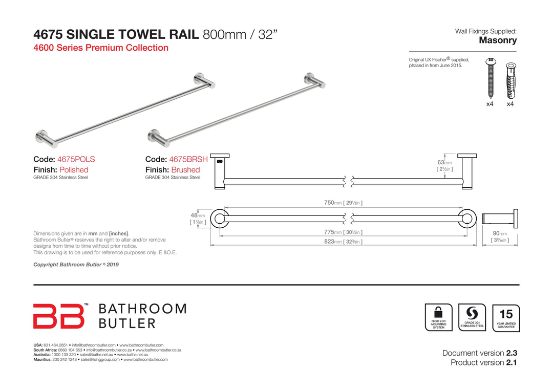 Description: Enhance your bathroom with the Bathroom Butler 4675 Single Towel Rail 800mm -BCGD, a premium accessory designed to add both function and style. Crafted from high-grade this Bathroom Accessory ensures durability and long-lasting performance.