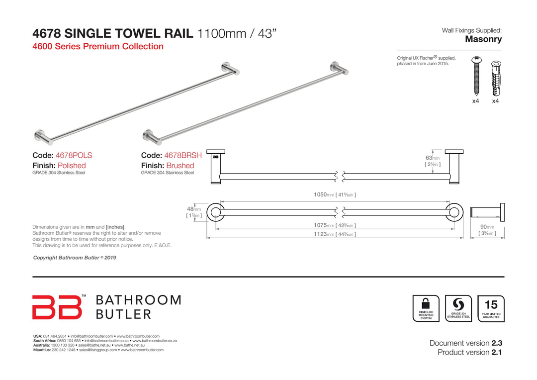 Description: Enhance your bathroom with the Bathroom Butler 4678 Single Towel Rail 1100mm -POLS, a premium accessory designed to add both function and style. Crafted from high-grade this Bathroom Accessory ensures durability and long-lasting performance.