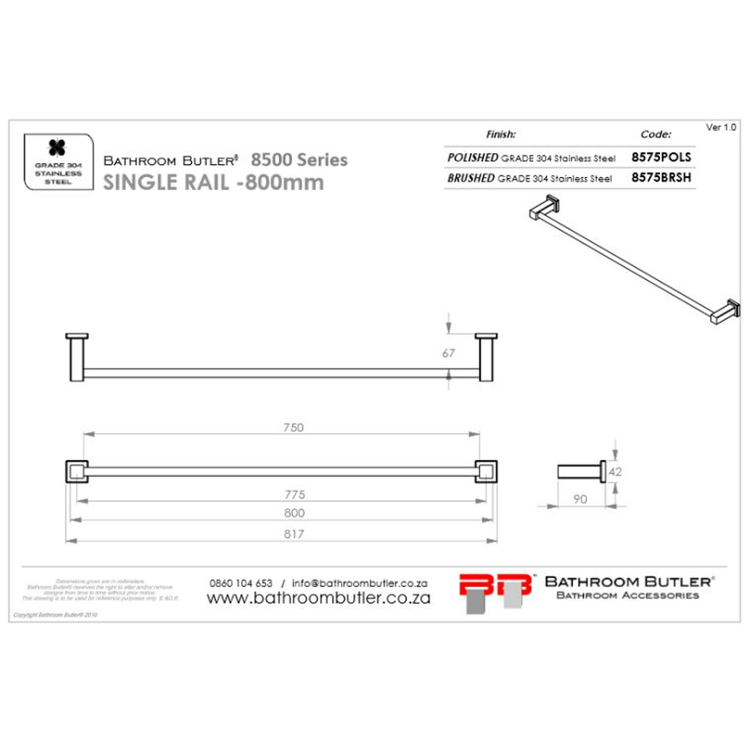 Description: Enhance your bathroom with the Bathroom Butler 8575 Single Towel Rail 800mm -BRSH, a premium accessory designed to add both function and style. Crafted from high-grade this Bathroom Accessory ensures durability and long-lasting performance.