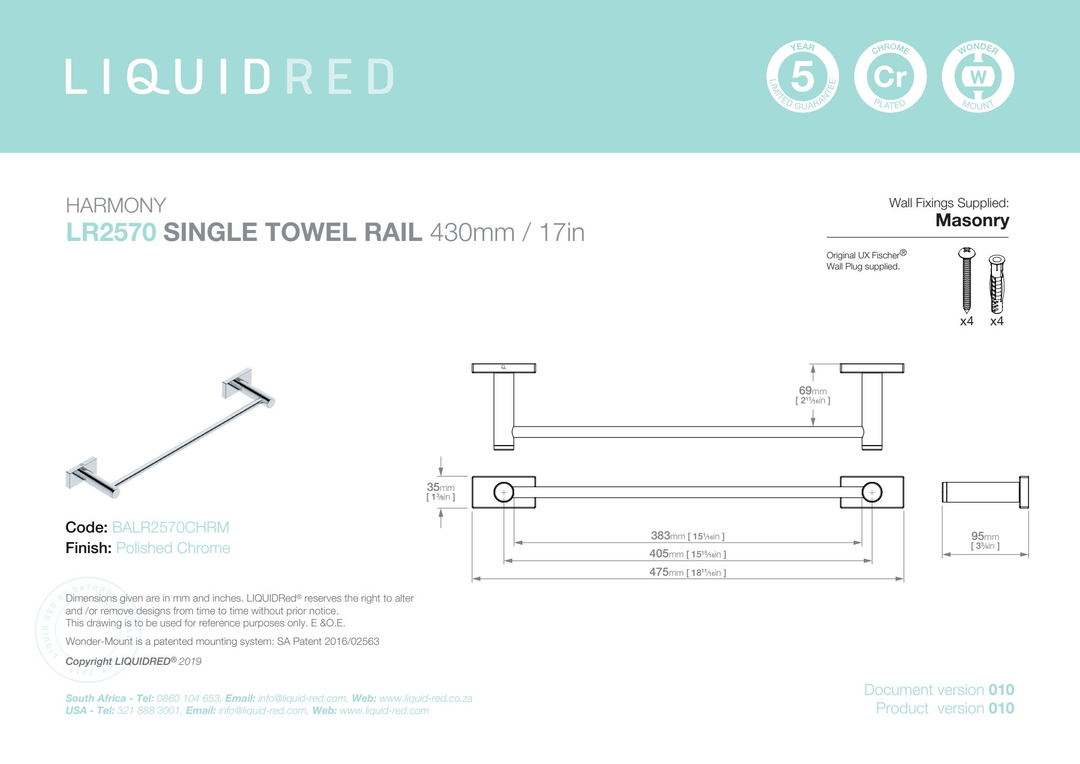 Description: The Liquid Red 2570 HARMONY Single Rail 430mm -CHRM combines sleek design with functionality, making it an essential addition to any contemporary bathroom. Built with premium materials, this Bathroom Accessory offers both style and durability.