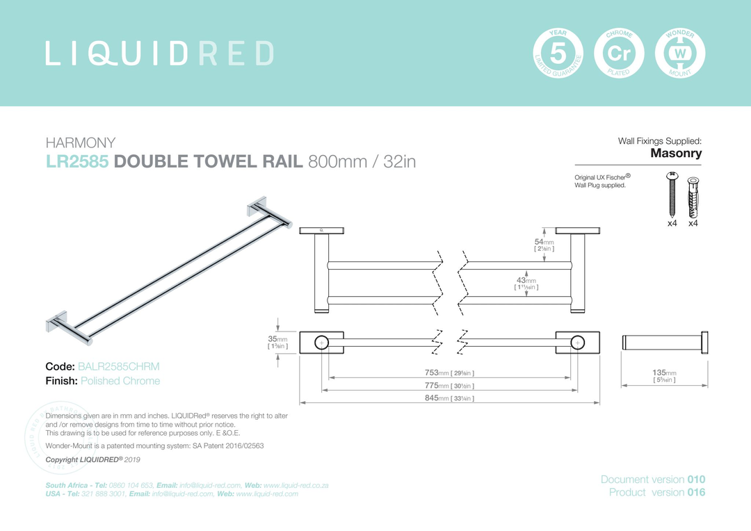 Description: The Liquid Red 2585 HARMONY Double Rail 800mm -CHRM combines sleek design with functionality, making it an essential addition to any contemporary bathroom. Built with premium materials, this Bathroom Accessory offers both style and durability.