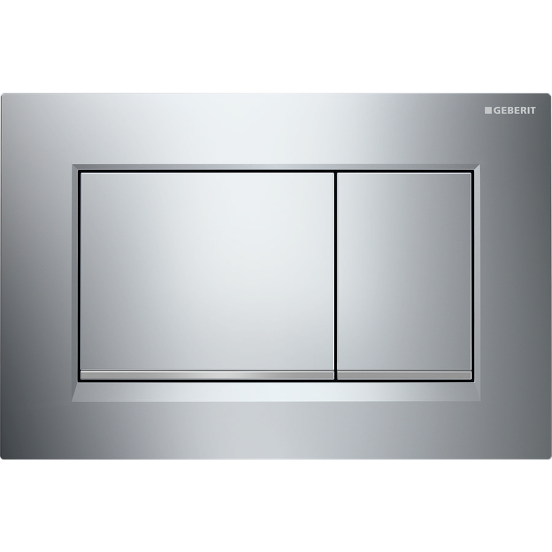 Description: The Geberit Geberit Sigma30 actuator plate for dual flush: Plate and buttons: Design stripes: chrome-plated offers unmatched durability and precision for professional installations. Designed with compatibility in mind, it ensures smooth integration with other Geberit systems.