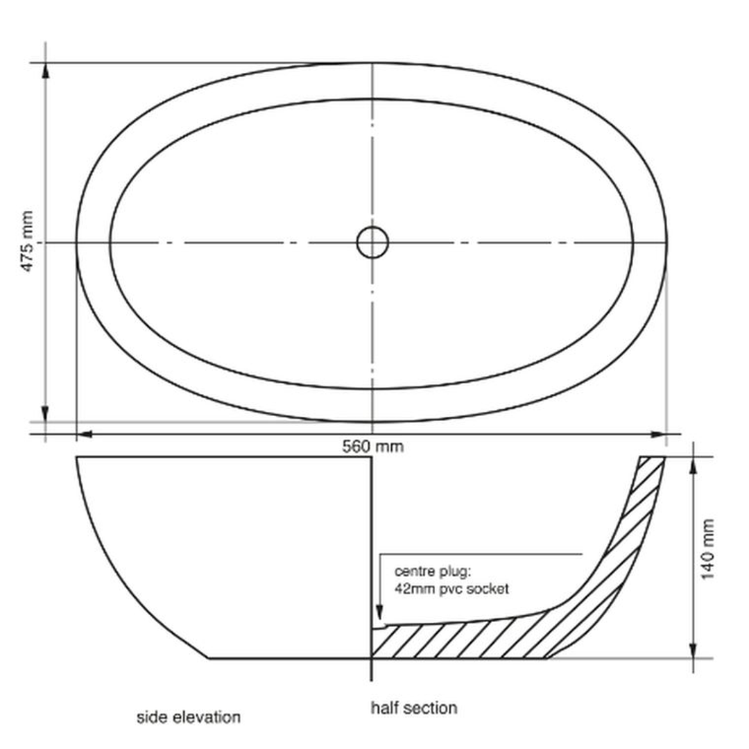 Ovale Large Countertop Basin 565 x 480 x 145mm