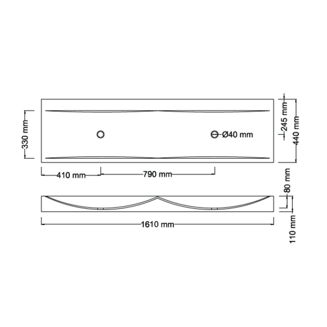 Crystallite, luxury bathroom, double wave 1.6, 1600x440x105, premium finish