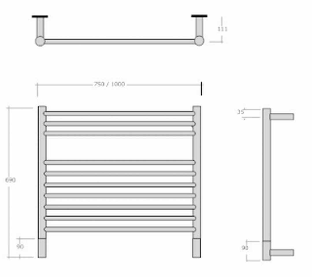 Classic K Straight Heated Towel Rail 1000x690mm Polished Stainless Steel