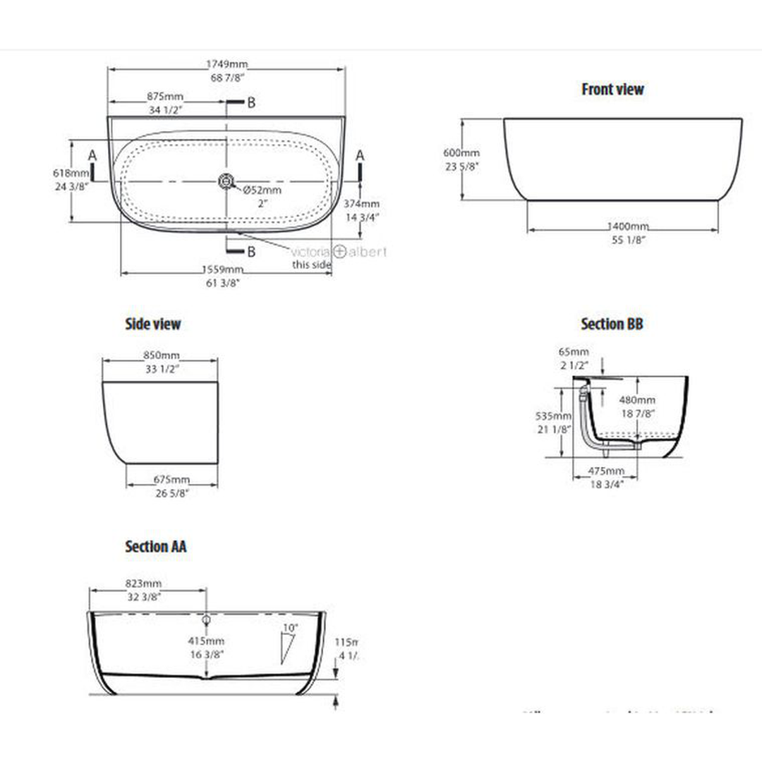 Description: The Victoria + Albert Eldon Tub - no overflow blends timeless elegance with modern craftsmanship. Built with QUARRYCAST™ material, a unique blend of volcanic limestone and resin, this Bathroom Fixture offers unmatched durability and beauty.
