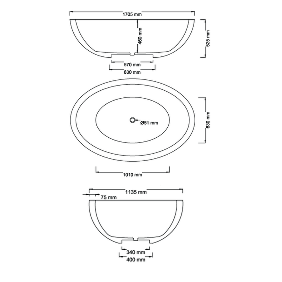 Crystallite, luxury bathroom, ifumi (oval), 1705x1135x525, premium finish