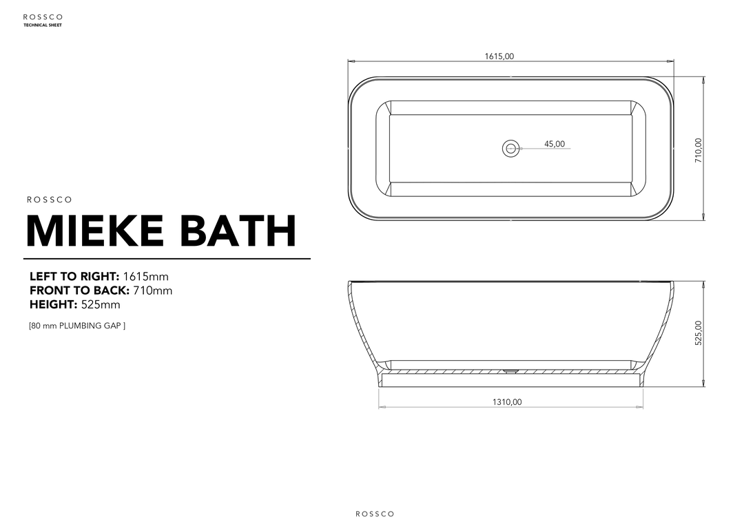 Description: The Rossco Mieke Bath - combines exceptional durability with a sleek design, perfect for residential and commercial spaces. Designed to withstand frequent use, this General Bathroom Product offers a stylish yet functional solution.