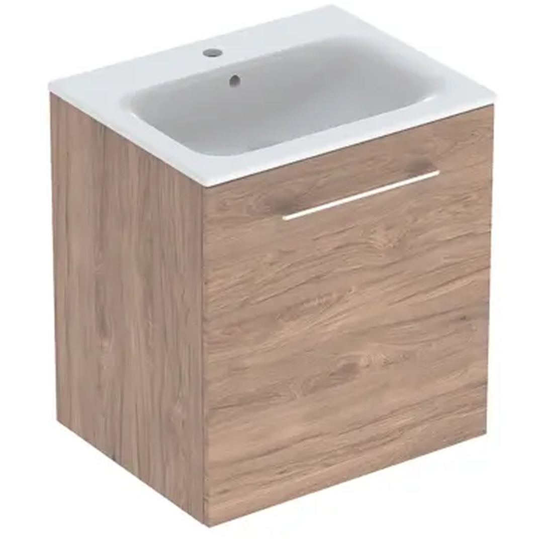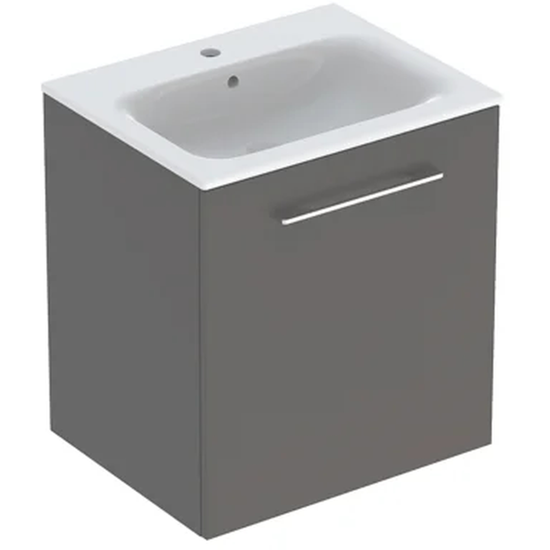 Description: The Geberit Geberit Selnova Square set of vanity basin, slim rim, with cabinet, one door: B1=58.8cm, T=50.2cm, Tap hole=central, Overflow=visible, offers unmatched durability and precision for professional installations. Designed with compatibility in mind, it ensures smooth integration with other Geberit systems.