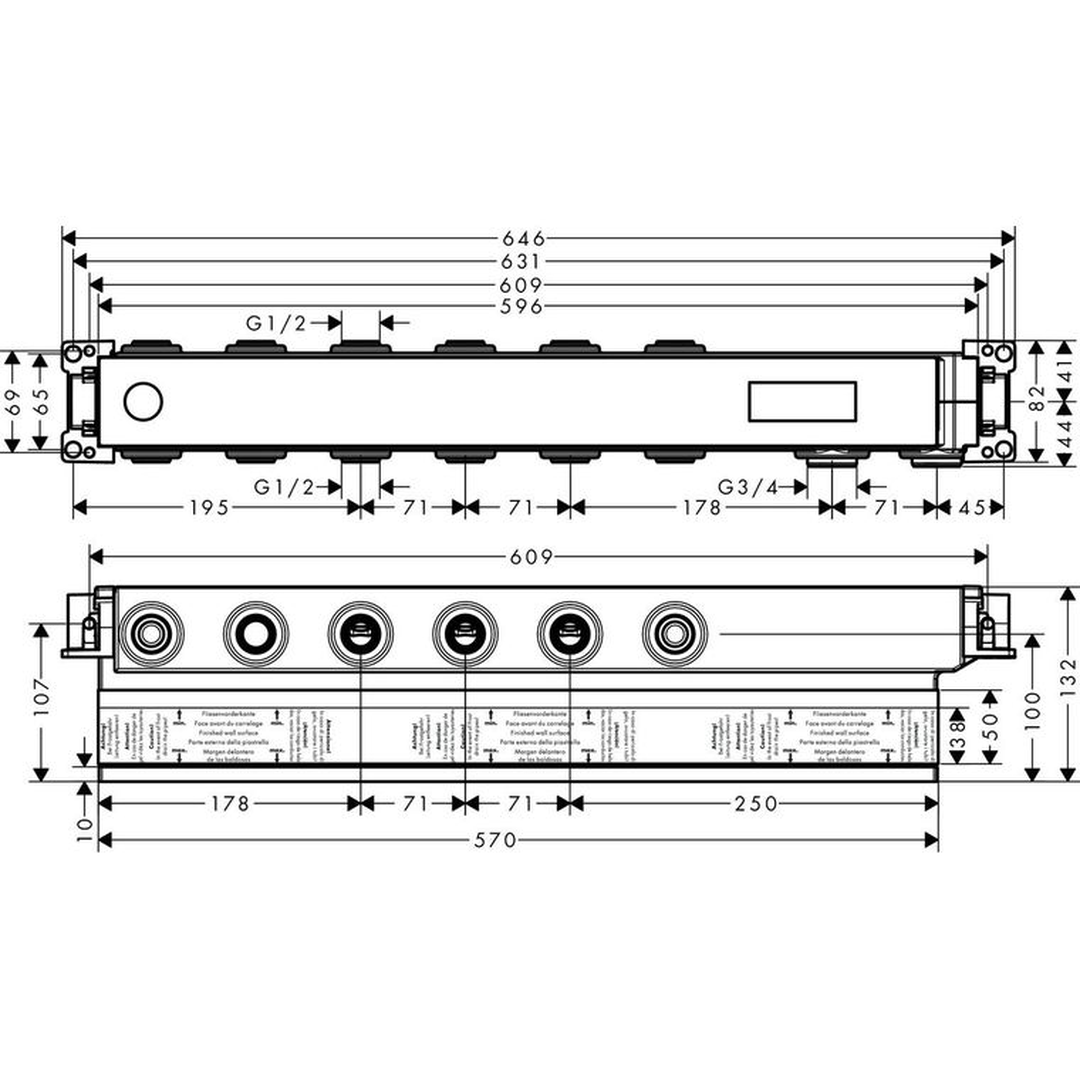 Description: High-quality base set from hansgrohe for installing a thermostatic shower mixer with four functions The RainSelect base set for four functions makes it safe and easy to install a hansgrohe RainSelect or Rainfinity shower and thermostat finish set. It forms the solid foundations for a stylish and modern bathroom that offers years of care-free showering. The high-quality and innovative technology from hansgrohe works its magic behind the scenes and ensures reliable functionality in the long term. Concealed installation for more space in the shower • The base set is attached to the water connections via the Rp ¾ connection thread (DN15/DN20) • It is installed horizontally with an installation depth of 87-122 mm • The sound insulated and waterproof casing from hansgrohe is the first choice for convenient and safe use - Hansgrohe - RainSelect - Taps - Concealed Parts -