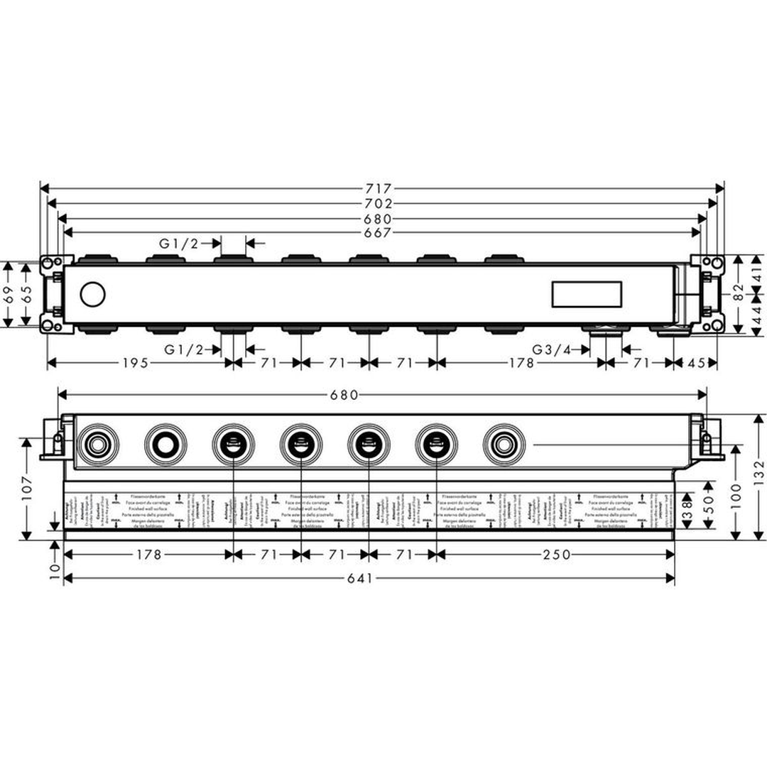 Description: High-quality base set from hansgrohe for installing a thermostatic shower mixer with five functions The RainSelect base set for five functions makes it safe and easy to install a hansgrohe RainSelect or Rainfinity shower and thermostat finish set. It forms the solid foundations for a stylish and modern bathroom that offers years of care-free showering. The high-quality and innovative technology from hansgrohe works its magic behind the scenes and ensures reliable functionality in the long term. Concealed installation for more space in the shower • The base set is attached to the water connections via the Rp ¾ connection thread (DN15/DN20) • It is installed horizontally with an installation depth of 87-122 mm • The sound insulated and waterproof casing from hansgrohe is the first choice for convenient and safe use - Hansgrohe - RainSelect - Taps - Concealed Parts -
