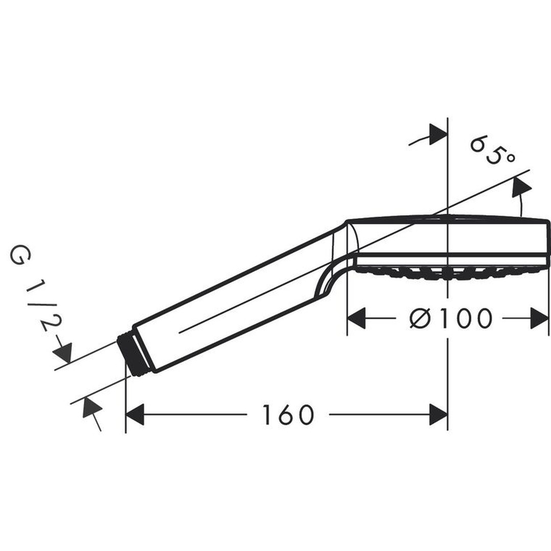 Description: Combine a lower consumption with more fun when showering The Crometta 1jet EcoSmart hand shower with a white spray disc and shiny chrome surfaces saves precious resources while still providing complete showering pleasure in the bathroom. Integrated technology limits the flow amount to a maximum of 9 l/min (EcoSmart), and makes sustainability a daily pleasure. A 100 mm shower head generously distributes the sparkling wet over the body (XXL Performance), misting it with the feeling of freshness and cleanliness . The wonderful feeling of rain on the skin Just set the desired temperature and go! The spray pattern Rain is like a strong downpour. The fresh water pleasure is relaxing and reactivating, and adds an additional highlight every day. The strong spray is ideal for thoroughly rinsing shampoo out of the hair. • The gently rounded design harmonises skilfully with bathrooms in a modern or classic design • Very easy to clean: limescale deposits on the silicone nozzles can simply be rubbed off with a finger (QuickClean) • Suitable for connection to continuous-flow water heaters - Hansgrohe - Crometta - Showers - Hand Showers - White/Chrome