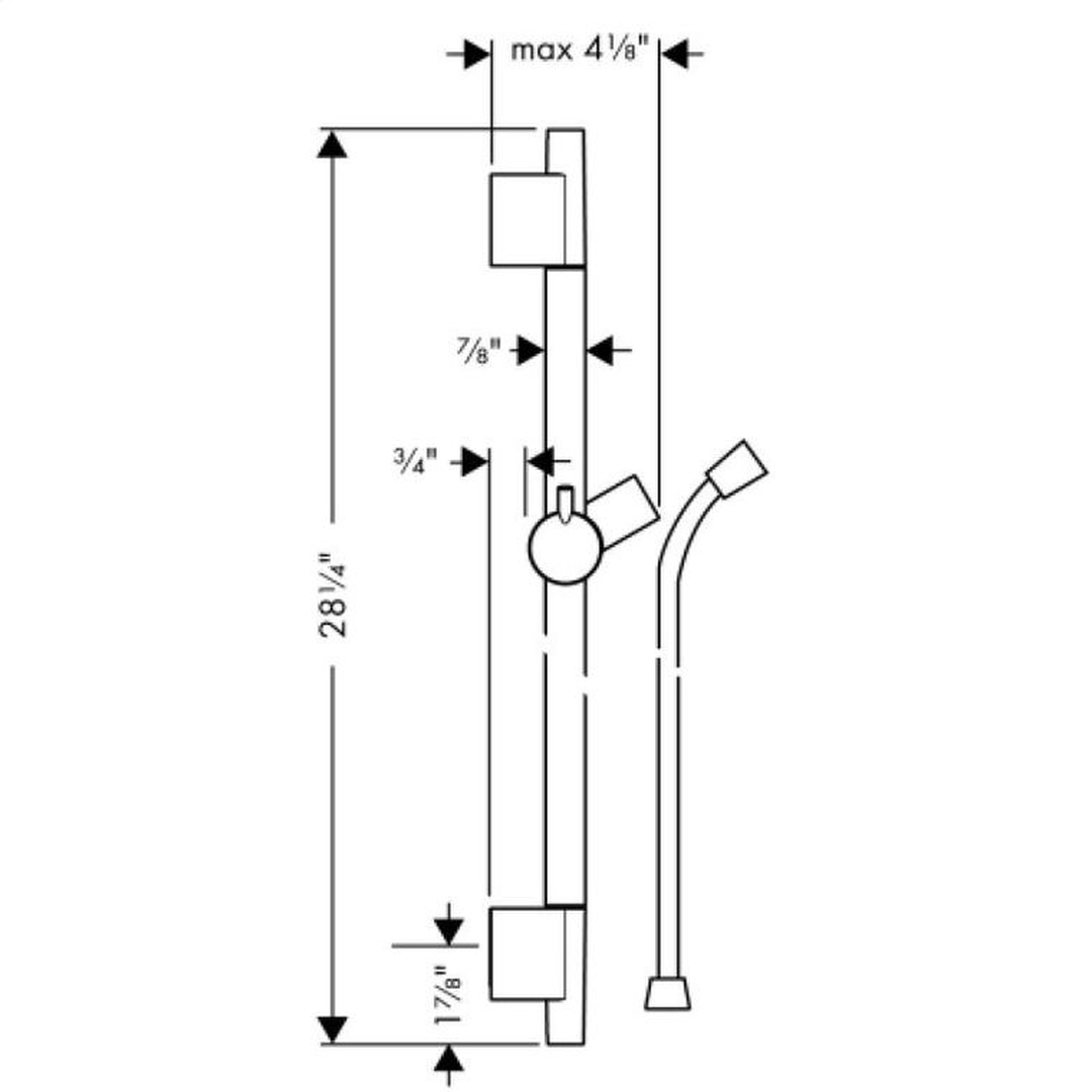 Description: Instantly adds design flair to the bathroom: 65 cm shower rail from hansgrohe in metallic The hansgrohe Unica S Puro 65 cm shower rail with shower hose in is an easy-to-install shower solution perfect for renovations. It instantly adds design flair to the bathroom. The shower rail features a timeless and elegant rounded design. Its surface finish in metallic can be used in several ways in modern bathroom settings, for example to create a stunning contrast or as a matching set with a shower head in the matching surface finish. The set in consists of a sturdy brass tube, metal shower slide and 1.60 m long plastic hose. It is simply attached to the existing water connections in the shower or bath tub and affixed to the wall (connection size: DN15). User-friendly and flexible: long shower hose, easy-to-position shower head Great lengths for convenience: The 1.60 m kink-proof Isiflex shower hose made of high-quality plastic creates more freedom to move. A special mounting set prevents tangling. The lockable metal shower slide is easy to use with one hand. • Sturdy 0.65 m long brass shower rail for flexible height adjustment across a vast area • Ideal for modernisation: The shower hose can be simply screwed onto an existing connection. Connection size: DN 15 - Hansgrohe - Unica S - Showers - Shower Rails - Chrome