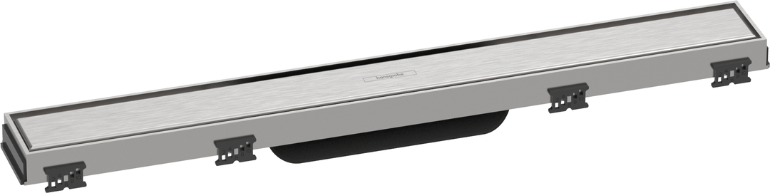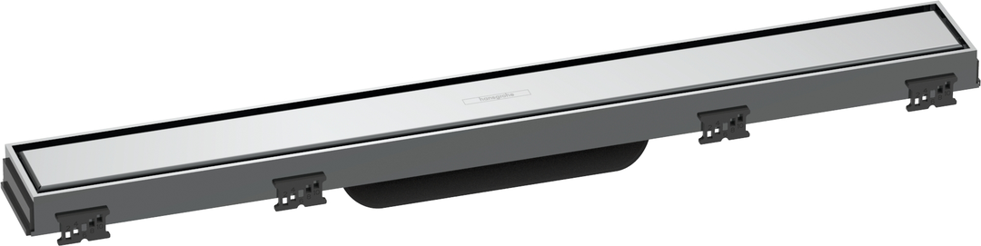 Description: In or tiled: hansgrohe RainDrain Match 60 cm drain barrier with Dryphon and very high drainage performance The RainDrain Match 600 drain barrier (finish set) in from hansgrohe is a flexible drainage solution for installation flush with the back wall or freestanding in the shower area. With its surface finish, the drain barrier is suitable for modern as well as classic bathroom designs. Alternatively, the channel can be tiled at the back also (max. tile thickness 18 mm). The vertically adjustable frame offers flexibility in the drain barrier also: so the system can be adjusted to the height of the tiles – for floor-level installation without trip hazard. The result meets the requirements of a barrier-free shower area. When using the hansgrohe Dryphon drainage system included in the scope of delivery, the channel offers a revolutionary drainage capacity of up to 60 L/min. This makes the RainDrain Match your ideal partner even for the largest hansgrohe showers. The high drainage rate combined with the innovative high-tech silicone membrane also ensure that hair and dirt do not get stuck. This helps prevent annoying blockages in the drain. Optionally, a standard trap can be used. Simple. Beautiful. The Dryphon insert can be removed from the base set for thorough, easy cleaning. It is easy: They are installed on a complete set with pre-assembled sealing fleece (sold separately). Other special features • Adaptation to the tile thickness by means of vertically adjustable frame (7 - 18 mm) • Wall flange for flush mounting on the rear panel included • as part of the scope of delivery Suitable for primary and secondary drainage • A complete set is required for installation. Seal water height 30 mm: #56016180 or seal water height 50 mm: #56022180 • Easy-care, durable surface finish - Hansgrohe - Raindrain - Floor Drain - Shower Channel - Chrome
