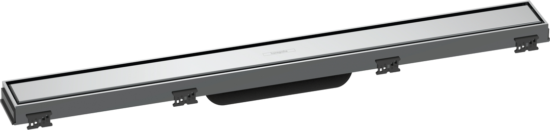 Description: In or tiles: hansgrohe RainDrain Match 70 cm drain barrier with Dryphon and very high drainage performance . The RainDrain Match 700 drain barrier (finish set) in from hansgrohe is your flexible drainage solution for installation flush to the back wall or freestanding in the shower area. With its surface finish, the drain barrier is suitable for modern as well as classic bathroom designs. Alternatively, the channel can be tiled at the back also (max. tile thickness 18 mm). The vertically adjustable frame offers flexibility in the drain barrier also: so the system can be adjusted to the height of the tiles – for floor-level installation without trip hazard. The result meets the requirements of a barrier-free shower area. When using the hansgrohe Dryphon drainage system included in the scope of delivery, the channel offers a revolutionary drainage capacity of up to 60 L/min. This makes the RainDrain Match your ideal partner even for the largest hansgrohe showers. The high drainage rate combined with the innovative high-tech silicone membrane also ensure that hair and dirt do not get stuck. This helps prevent annoying blockages in the drain. Optionally, a standard trap can be used. Simple. Beautiful. The Dryphon insert can be removed from the base set for thorough, easy cleaning. It is easy: They are installed on a complete set with pre-assembled sealing fleece (sold separately). Other special features • Adaptation to the tile thickness by means of vertically adjustable frame (7 - 18 mm) • Wall flange for flush mounting on the rear panel included • as part of the scope of delivery Suitable for primary and secondary drainage • A complete set is required for installation. Seal water height 30 mm: #56017180 or seal water height 50 mm: #56023180 • Easy-care, durable finish - Hansgrohe - Raindrain - Floor Drain - Shower Channel - Chrome