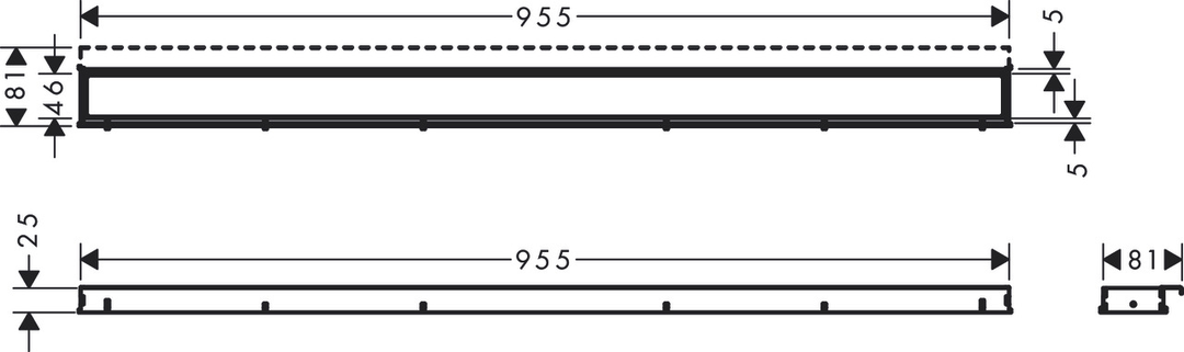 Description: In or tiled: hansgrohe RainDrain Match 100 cm drain barrier with Dryphon and very high drainage performance . The RainDrain Match 1000 drain barrier (finish set) in from hansgrohe is a flexible drainage solution for installation flush to the back wall or freestanding in the shower area. The drain barrier goes really well with modern bathroom designs. Alternatively, the channel can be tiled at the back also (max. tile thickness 18 mm). The vertically adjustable frame offers flexibility in the drain barrier also: so the system can be adjusted to the height of the tiles – for floor-level installation without trip hazard. The result meets the requirements of a barrier-free shower area. When using the hansgrohe Dryphon drainage system included in the scope of delivery, the channel offers a revolutionary drainage capacity of up to 60 L/min. This makes the RainDrain Match your ideal partner even for the largest hansgrohe showers. The high drainage rate combined with the innovative high-tech silicone membrane also ensure that hair and dirt do not get stuck. This helps prevent annoying blockages in the drain. Optionally, a standard trap can be used. Simple. Beautiful. The Dryphon insert can be removed from the base set for thorough, easy cleaning. It is easy: They are installed on a complete set with pre-assembled sealing fleece (sold separately). Other special features • Adaptation to the tile thickness by means of vertically adjustable frame (7 - 18 mm) • Wall flange for flush mounting on the rear panel included • as part of the scope of delivery Suitable for primary and secondary drainage • A complete set is required for installation. Water trap height 30 mm: #56020180 or water barrier height 50 mm: #56026180 • In easy-care, durable - Hansgrohe - Raindrain - Floor Drain - Shower Channel - Steel