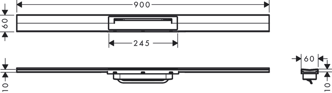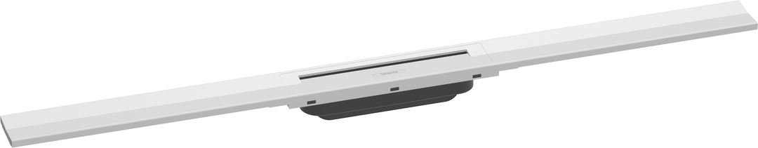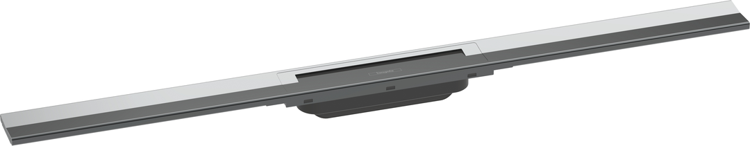 Description: Modern, adaptable, powerful: hansgrohe RainDrain Flex drain barrier 90 cm with Dryphon and very high drainage performance The shortenable RainDrain Flex drain barrier 900 (finish set) from hansgrohe is a high-quality and flexible drainage solution for modern showers. The rectangular cover completes the customised bathroom design – for a seamless design. The drain barrier can be shortened to the appropriate dimensions on site. This simplifies flush-mounted installation on both sides in different shower areas. The RainDrain Flex drain barrier can also be height adjusted via an integrated adapter – for floor-level installation minus the tripping hazard. The result meets the requirements of a barrier-free shower area. When using the hansgrohe Dryphon drainage system that is included in the scope of delivery, the drain barrier offers a revolutionary drainage capacity of up to 60 L/min. This makes RainDrain Flex your ideal partner for even the largest of hansgrohe showers. The high drainage rate combined with the innovative high-tech silicone membrane also ensure that hair and dirt do not get stuck. This helps prevent annoying blockages in the drain. Optionally, a standard trap can be used. Simple. Nice. The Dryphon insert can be removed from the basic set for thorough, easy cleaning. Uncomplicated: They are installed on a basic set with pre-assembled sealing fleece (sold separately). Other special features • Easy installation directly on the screed thanks to integrated gradient • Suitable for primary drainage • Required base set depending on application area: Seal water height 30 mm: #01000180 or seal water height 50 mm: #01001180 • Easy-care, durable finish - Hansgrohe - Raindrain - Floor Drain - Shower Channel - Chrome