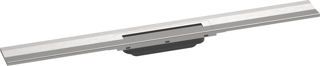 Description: Modern, can be shortened, powerful: hansgrohe RainDrain Flex drain barrier 80 cm with Dryphon and very high drainage performance The shortenable RainDrain Flex drain barrier 800 (finish set) from hansgrohe is a high-quality, flexible drainage solution for contemporary showers. The cover completes any customised bathroom design. The drain barrier can be shortened to the appropriate dimensions on site. This simplifies the three-sided flush-mounted installation in different shower areas. The RainDrain Flex drain barrier can also be height adjusted via an integrated adapter – for floor-level installation minus the tripping hazard. The result meets the requirements of a barrier-free shower area. When using the hansgrohe Dryphon drainage system that is included in the scope of delivery, the drain barrier offers a revolutionary drainage capacity of up to 60 L/min. This makes RainDrain Flex your ideal partner for even the largest of hansgrohe showers. The high drainage rate combined with the innovative high-tech silicone membrane also ensure that hair and dirt do not get stuck. This helps prevent annoying blockages in the drain. Optionally, a standard trap can be used. Simple. Nice. The Dryphon insert can be removed from the basic set for thorough, easy cleaning. Uncomplicated: They are installed on a basic set with pre-assembled sealing fleece (sold separately). Other special features • Easy installation directly on the screed thanks to integrated gradient • Suitable for primary drainage • Required base set depending on application area: Seal water height 30 mm: #01000180 or seal water height 50 mm: #01001180 • Easy-care, durable finish - Hansgrohe - Raindrain - Floor Drain - Shower Channel - Chrome