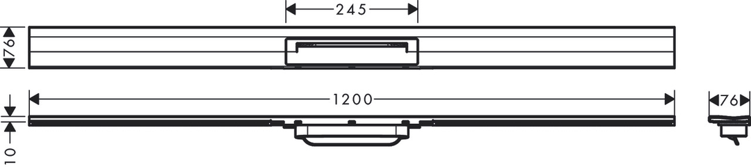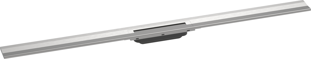 Description: Modern, can be shortened, powerful: hansgrohe RainDrain Flex drain barrier 120 cm in with Dryphon and very high drainage performance The shortenable RainDrain Flex drain barrier 1200 (finish set) in from hansgrohe is a high-quality, flexible drainage solution for contemporary showers. The cover in completes the customised bathroom design. The drain barrier can be shortened to the appropriate dimensions on site. This simplifies the three-sided flush-mounted installation in different shower areas. The RainDrain Flex drain barrier can also be height adjusted via an integrated adapter – for floor-level installation minus the tripping hazard. The result meets the requirements of a barrier-free shower area. When using the hansgrohe Dryphon drainage system that is included in the scope of delivery, the drain barrier offers a revolutionary drainage capacity of up to 60 L/min. This makes RainDrain Flex your ideal partner for even the largest of hansgrohe showers. The high drainage rate combined with the innovative high-tech silicone membrane also ensure that hair and dirt do not get stuck. This helps prevent annoying blockages in the drain. Optionally, a standard trap can be used. Simple. Nice. The Dryphon insert can be removed from the basic set for thorough, easy cleaning. Uncomplicated: They are installed on a basic set with pre-assembled sealing fleece (sold separately). Other special features • Easy installation directly on the screed thanks to integrated gradient • Suitable for primary drainage • Required base set depending on application area: Seal water height 30 mm: #01000180 or seal water height 50 mm: #01001180 • In easy-care, durable - Hansgrohe - Raindrain - Floor Drain - Shower Channel - Steel