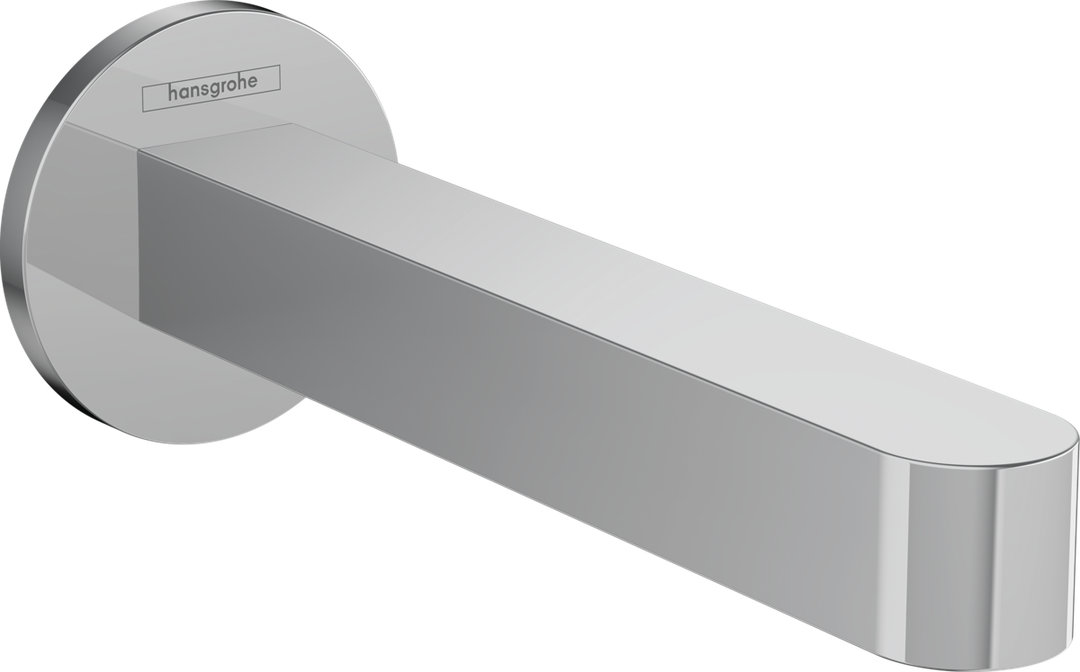Description: Elegant wall-mounted bath filler for that purist bathroom ambience The Finoris bath filler from hansgrohe goes perfectly with other taps from the Finoris design range. Its slim, geometric shape goes especially well with a purist bathroom ambience. Thanks to the shiny, easy-to-clean finish, the bathtub filler makes a real statement. With a high flow rate of up to 20.3 L/min. (at 3 bar), the bath tub fills up real fast. Particularly pleasant: the water is automatically enriched with air (AirPower) This creates plumper and softer water droplets that splash less. Combined with the excellent workmanship in proven hansgrohe quality, the bathroom becomes a haven of wellness and relaxation. Easy installation The Finoris bath filler can simply be screwed onto an existing standard water connection (G ½). The water quantity and temperature can be adjusted with a separate concealed installation - such as the separately available Finoris series bath mixer (#76415000). The projection is 17.4 cm, which is the distance between the wall and the perlator. - Hansgrohe - Finoris - Taps - Spouts - Chrome