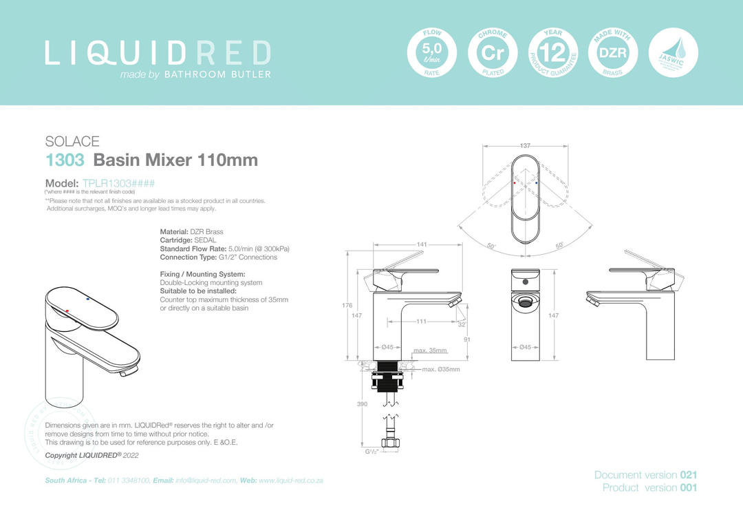 Description: The Liquid Red SOLACE (1303) Basin Mixer Single Lever 110mm -BCGD combines sleek design with functionality, making it an essential addition to any contemporary bathroom. Built with premium materials, this Bathroom Accessory offers both style and durability.