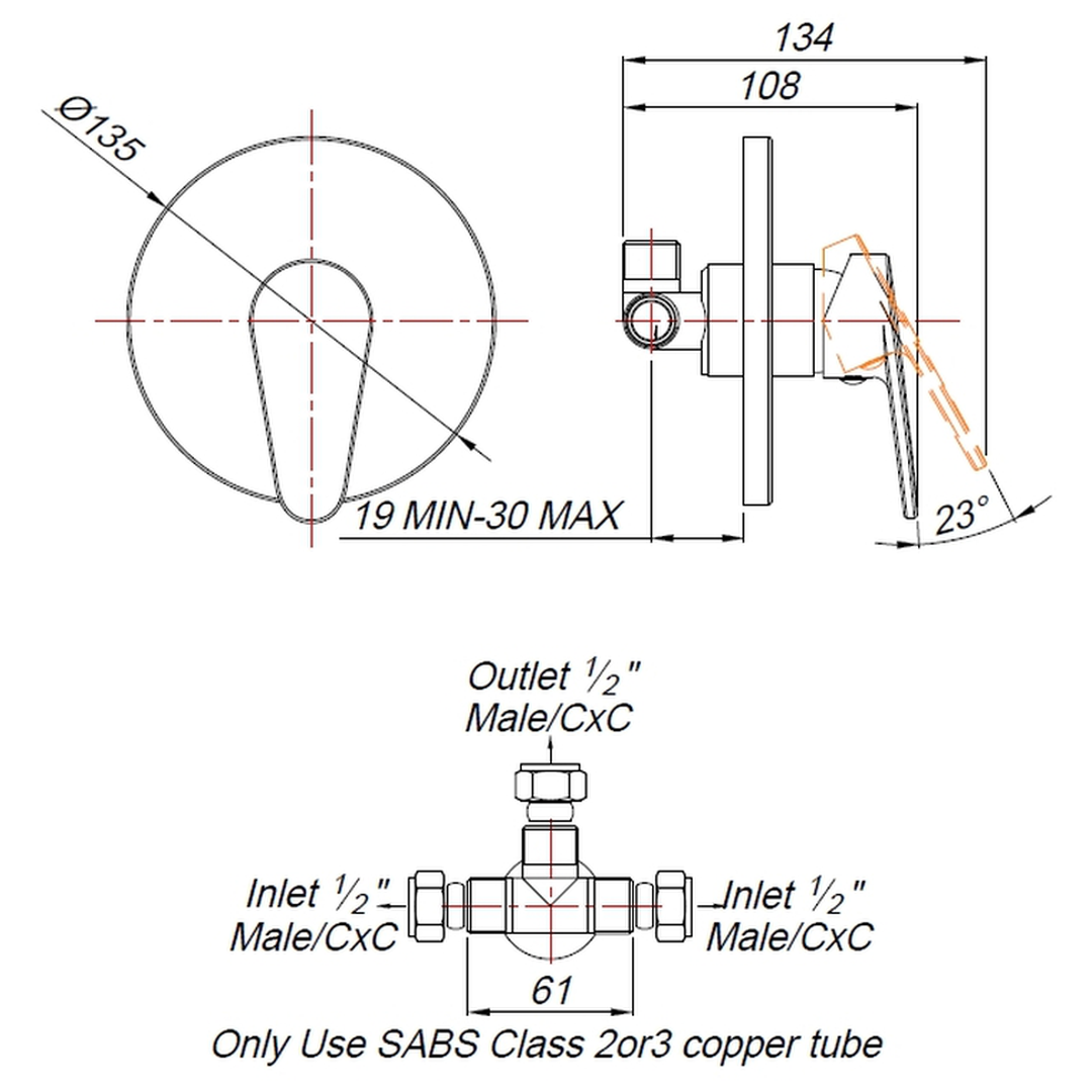 • Description: Bore Concealed Mixer - Bore Tide Round 3 Way Bath Shower Mixer Chrome