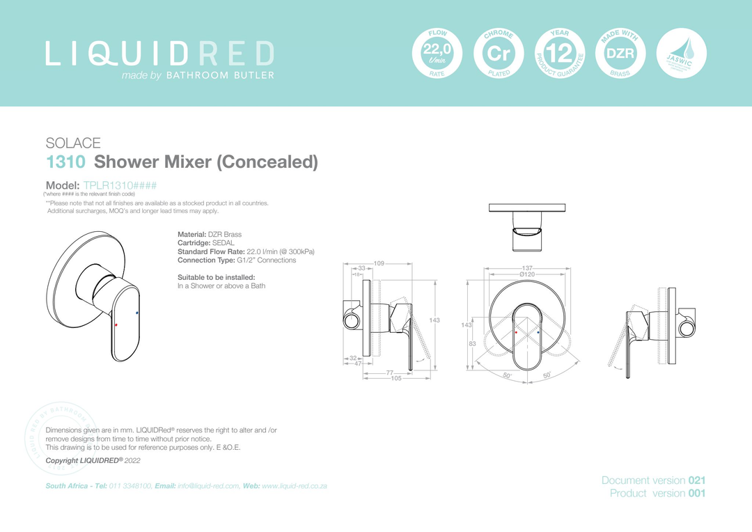 Description: The Liquid Red SOLACE (1310) Shower Mixer Concealed Single Lever -CHRM combines sleek design with functionality, making it an essential addition to any contemporary bathroom. Built with premium materials, this Bathroom Accessory offers both style and durability.
