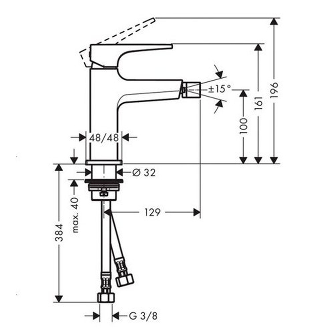 Description: Elegant bidet tap for more convenience The Metropol single lever bidet tap with lever handle and push-open waste set adds the finishing touches to the modern bathroom. The geometric design of the Metropol range is suitable for a timeless bathroom style and emphasises the high-end value of the bidet tap. Sophisticated ideas add indulgence to time spent in the bathroom The water volume and required temperature can be quickly and reliably set on the large, flat lever handle, while the high-quality, long-lasting ceramic mixer system from hansgrohe does all the work. The push-open waste set is just as user-friendly: It can be used to effortlessly open and close the drain. There is also no more need for the operating handle on the back of the tap, making the tap look even slimmer. The water can be freely adjusted using a ball joint on the jet former, so the angle of the water flow can be swivelled by up to 15 degrees to suit individual preferences. A wonderful feeling: This tap features an aerator on the spout for fuller, lighter, softer droplets. Its secret: The flowing water is automatically enriched with air (AirPower). • This tap is suitable for use with a continuous flow heater • Ultra-safe: The adjustable temperature limitation feature protects against excessively hot water • Guaranteed availability: Spare parts can be purchased up to 15 years after the range has been discontinued - Hansgrohe - Metropol - Taps - Bidet Mixers - Chrome