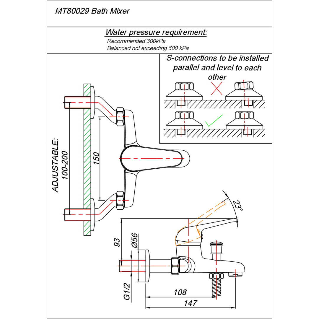 • Description: Mixed - Solid Bath Mixer W/T (100mm-200mm offset) - Mixed Tide Wall-Mounted Solid Handle Bath Mixer 100mm-200mm Offset Chrome