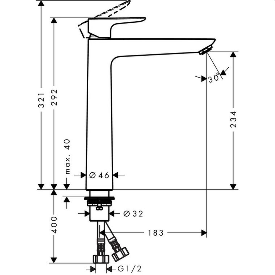Description: With its tall spout, the Talis E 240 single lever basin tap without waste set from hansgrohe is perfect for free-standing wash bowls. Its extremely large gap between the spout and wash basin creates huge amounts of space for care-free body care or filling large containers with ease. Air is automatically mixed in with the water jet at the spout. This makes the water very plump and soft with less spray (AirPower). - Hansgrohe - Talis E - Taps - Basin Mixers - Chrome