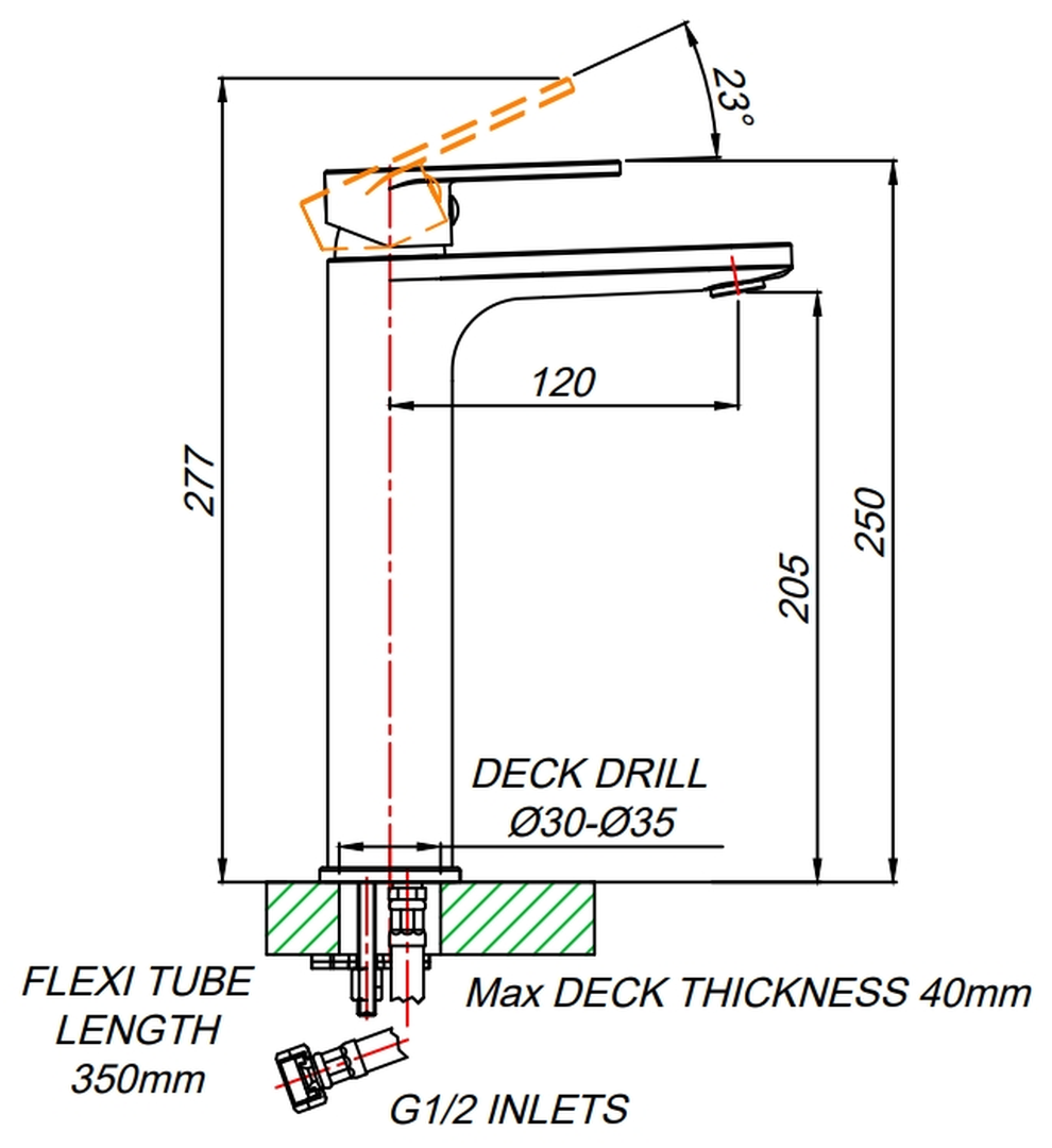 • Description: Bay High Basin Mixer 210mm - Bay High Basin Mixer 210mm Chrome