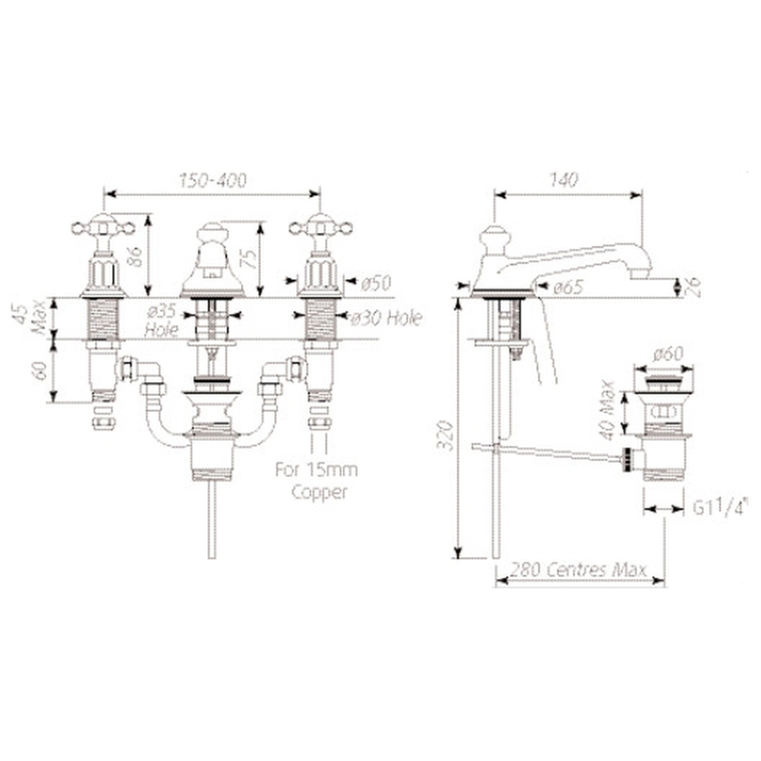 Description: The House of Rohl P&R Three hole deck mounted basin mixer - Crosshead Handles offers a seamless blend of functionality and elegant design, making it an ideal addition to any modern bathroom. Crafted from Brass, it ensures both durability and beauty.