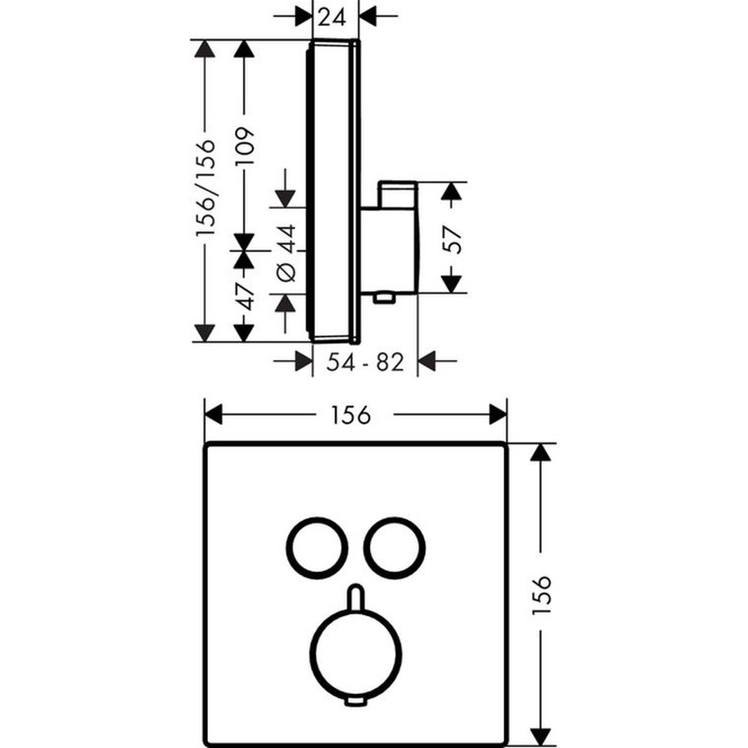 Description: When fitting the hansgrohe ShowerSelect thermostat for two functions, the shower control is completely hidden in the wall, that is "under the plaster". (The installation is based on the hansgrohe iBox universal basic set for concealed installation.) The specialist fits the square set with 2 Select buttons and an ergonomic rotary control with pin handle for setting the temperature to the elegantly concealed technology. The overhead and hand showers are switched on and off by a soft touch on the button – control pleasure at its purist! - Hansgrohe - ShowerSelect - Taps - Thermostatic Mixers - White/Chrome