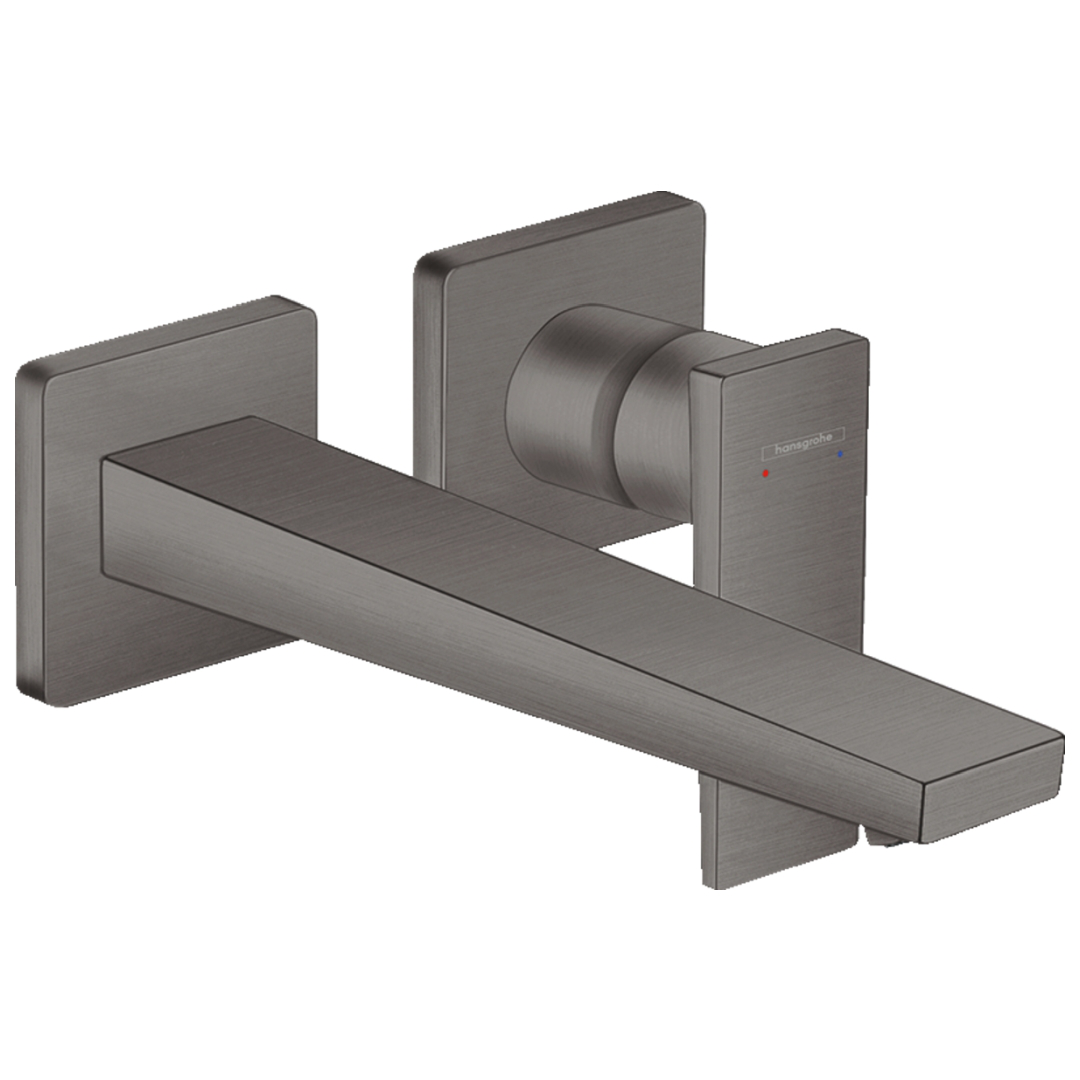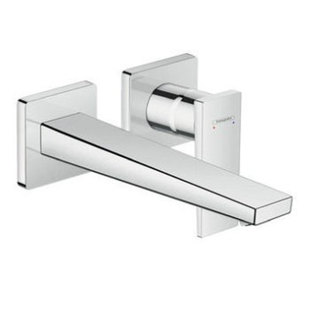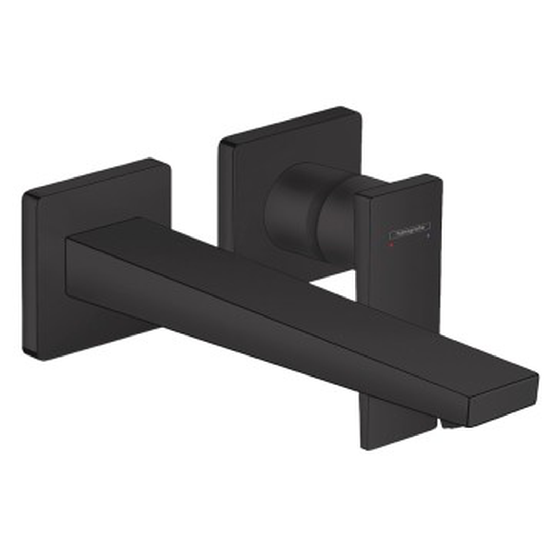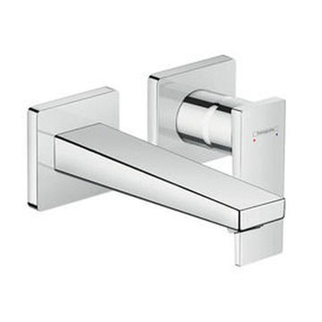 Description: Bold highlight in the bathroom: designer single lever basin tap for wall mounting in the surface finish The Metropol single lever basin tap with lever handle and 225 mm spout for wall mounting (concealed installation) in the surface finish from hansgrohe boasts impeccable design and functionality in equal measure. The elegant wall tap with long spout and separate handle features an impressive geometric design, which looks luxurious with its shiny surface in The combination of large surfaces, clear lines and the colour transforms the tap into a modern design statement. Another plus: The handle can be positioned on the left or the right. The large distance from the spout to the wall (225 mm) adds versatility and convenience to the tap, especially when combined with flat wash bowls. Economical consumption and many uses for the ultimate in convenience The water volume and temperature can be quickly and easily set using the tap’s flat lever handle. The user-friendly, modern ceramic mixer system guarantees long-lasting, reliable functionality. • Easy to clean: Effortlessly remove limescale by lightly wiping the silicone insert on the spout (QuickClean) • Noticeably voluminous, softer droplets: The water is automatically enriched with air (AirPower) • Saves water and money: The flow rate is automatically restricted to max. 5 l/min., regardless of the water pressure (EcoSmart) • More safety: A screen valve ensures that the drain always stays open to prevent water overflowing in wash basins with no overflow • Suitable for many uses, including continuous flow heaters • The base set (#13622180) is required for installation - Hansgrohe - Metropol - Taps - Basin Mixers - Optic