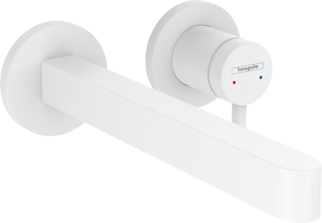Description: Slim design single lever tap for wall mounting The Finoris 2-hole basin mixer for wall mounting (22.5 cm) from hansgrohe makes a real statement: with its slim, geometric shape and clever wall installation. This creates more space around the hand basin, while at the same time combining well with a free-standing wash bowl. The minimalist design makes a real statement in the bathroom with its brilliant, easy-to-clean finish. Pretty cool how the high quality underscores the promising, elegant shape. For example, the pin handle controls a smooth-running ceramic mixer system from hansgrohe. One hand controls water volume and temperature consistently and reliably. The calm and crystal-clear laminar spray then perpetuates the slim tap body, forming a harmonious unit. Thanks to hansgrohe EcoSmart technology, the design mixer is extremely water-efficient. It uses a maximum of 5.3 L/min. - even at high water pressure. Drain set included The included unlockable waste set is used for hand basins and wash bowls without overflow. It prevents the water from overflowing. More bathroom design flexibility: the handle can be placed on the right or left. Depending on the way the basic set is mounted in the wall. Additional special features • Versatile use: This tap is also suitable for continuous flow heaters • Advantage of concealed installation: More space at the wash basin. Basic set for installation required separately: #13622180 • Outlet 228 mm (distance from wall to aerator) • After-sale warranty: Spare parts can be purchased up to 15 years after the range has been discontinued - Hansgrohe - Finoris - Mixer - Basin mixer - Chrome