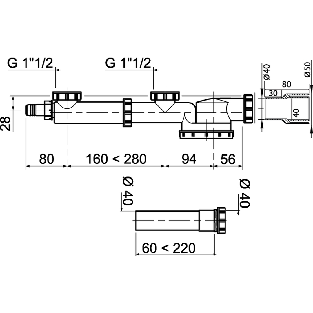 Description: Designed for durability and ease of use, the Wirquin ESPACE Double Sink Trap + W/M Conn + Extension Piece is perfect for professional and home installations. Its superior construction ensures a sleek appearance, high performance, and long-term reliability.