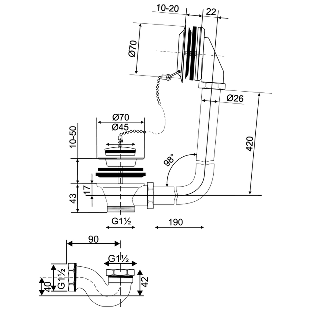 Description: Designed for durability and ease of use, the Wirquin Free Standing Brass CP Bath P Trap, Overflow, Waste Plug + Chain is perfect for professional and home installations. Its superior construction ensures a sleek appearance, high performance, and long-term reliability.