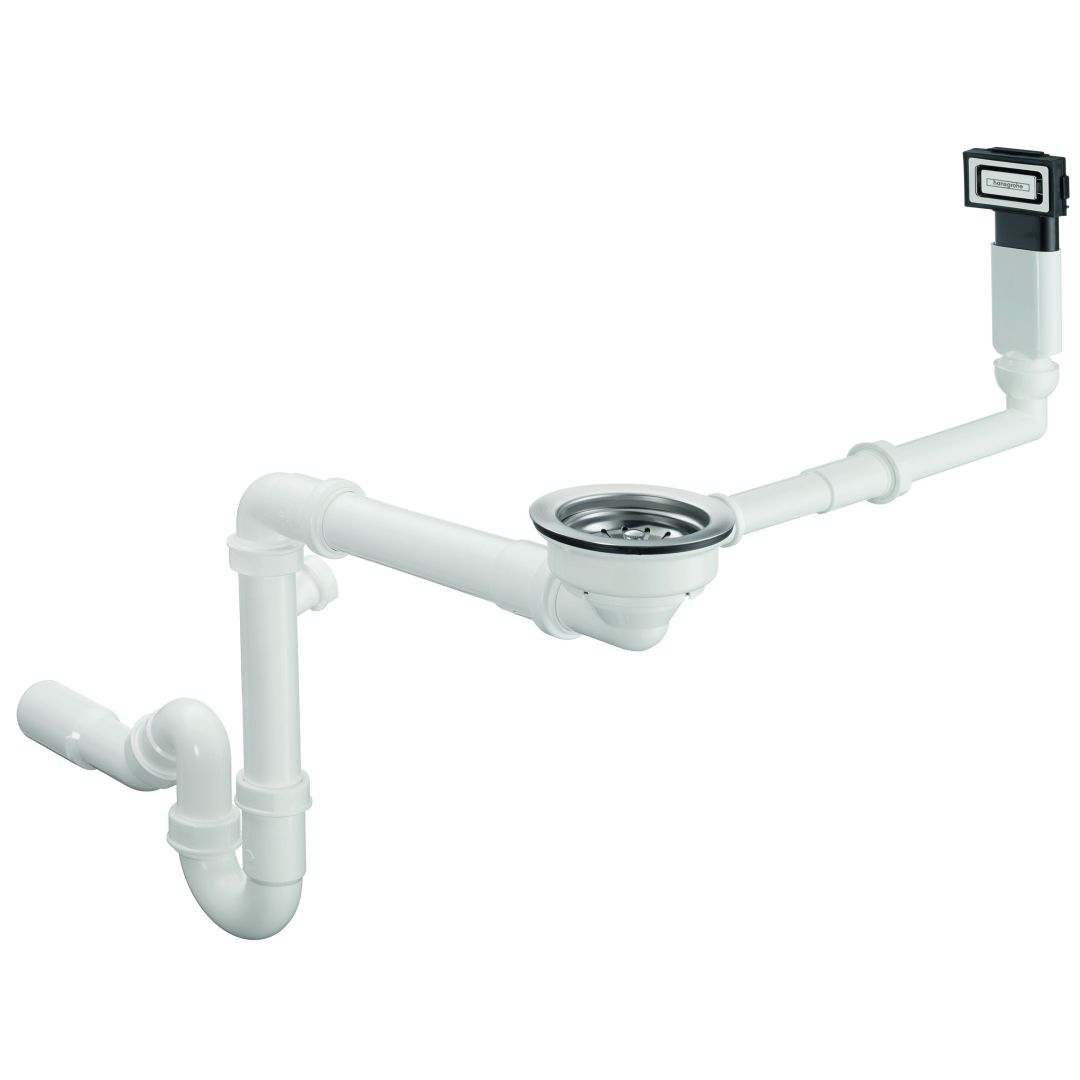 Description: Fitting waste and overflow set for granite kitchen sinks with single basin from hansgrohe The D16-10 manual waste and overflow set for single basins fits all granite sinks (SilicaTec) from hansgrohe featuring one sink basin. Varying basin widths are no longer a problem with a flexible installation pipe. This makes the choice just as easy as the installation. The drain is manually opened and closed by simply pushing or pulling the chrome-plated metal strainer. The rectangular overflow is positioned on the right basin rim, beyond the user’s direct field of vision. This creates an elegant look at the sink and is effective in stopping water from overflowing. The D16-10 from hansgrohe is stylish and safe in equal measure. Other features • Compact design: The waste system features a space-saving connector bend for more space under the sink • Consists of: manual waste and overflow set, screen valve, bottle trap • Screen valve with 3 ½ inch diameter • Versatile: includes optional connection for a drain pipe (e.g. for the dishwasher) - Hansgrohe - - Wastes, Traps & Overflows - Waste & Overflow Kits - Chrome