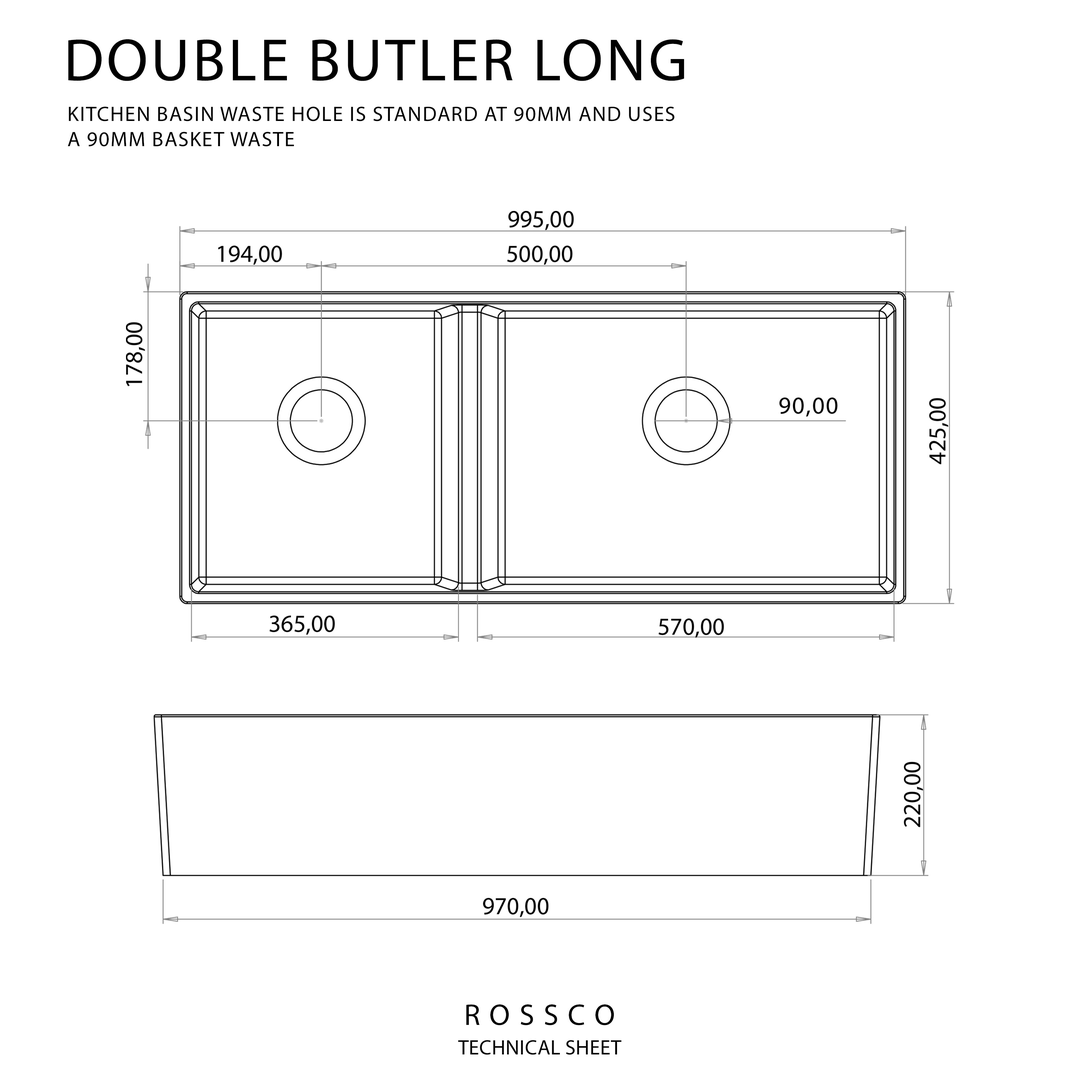 Description: The Rossco Butler Double Long Basin 995*425*220mm combines exceptional durability with a sleek design, perfect for residential and commercial spaces. Designed to withstand frequent use, this Basin / Sink offers a stylish yet functional solution.