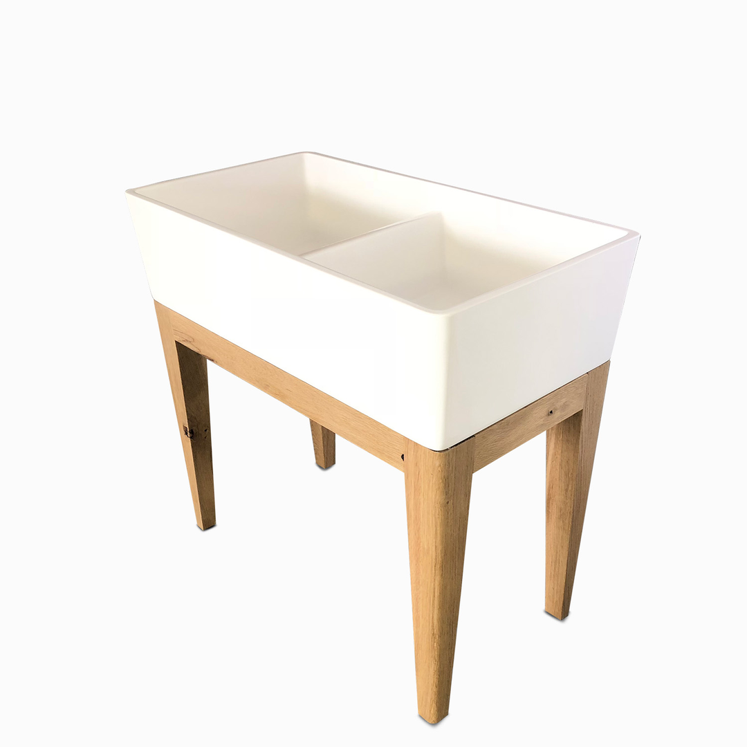Description: The Rossco Double Butler Sink with Oak Stand seamlessly blends classic farmhouse aesthetics with modern functionality. Crafted from high-quality composite materials and paired with a sturdy oak stand, this sink offers both durability and a touch of rustic charm, making it a standout addition to any kitchen or utility space.