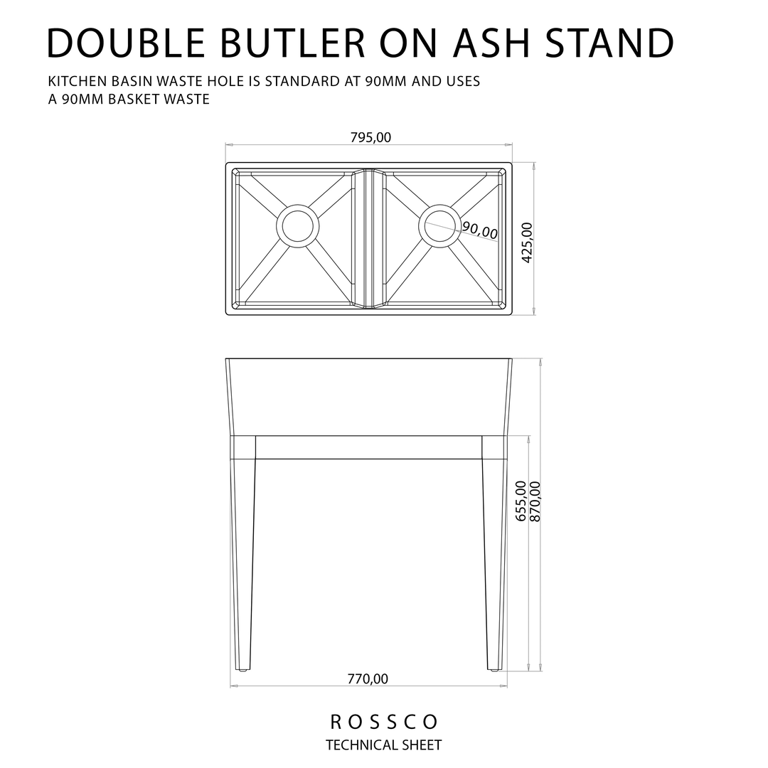 Rossco, CTK566, Double Butler Sink, Oak Stand, Farmhouse Sink, Composite Basin, Freestanding Sink, Kitchen Fixtures